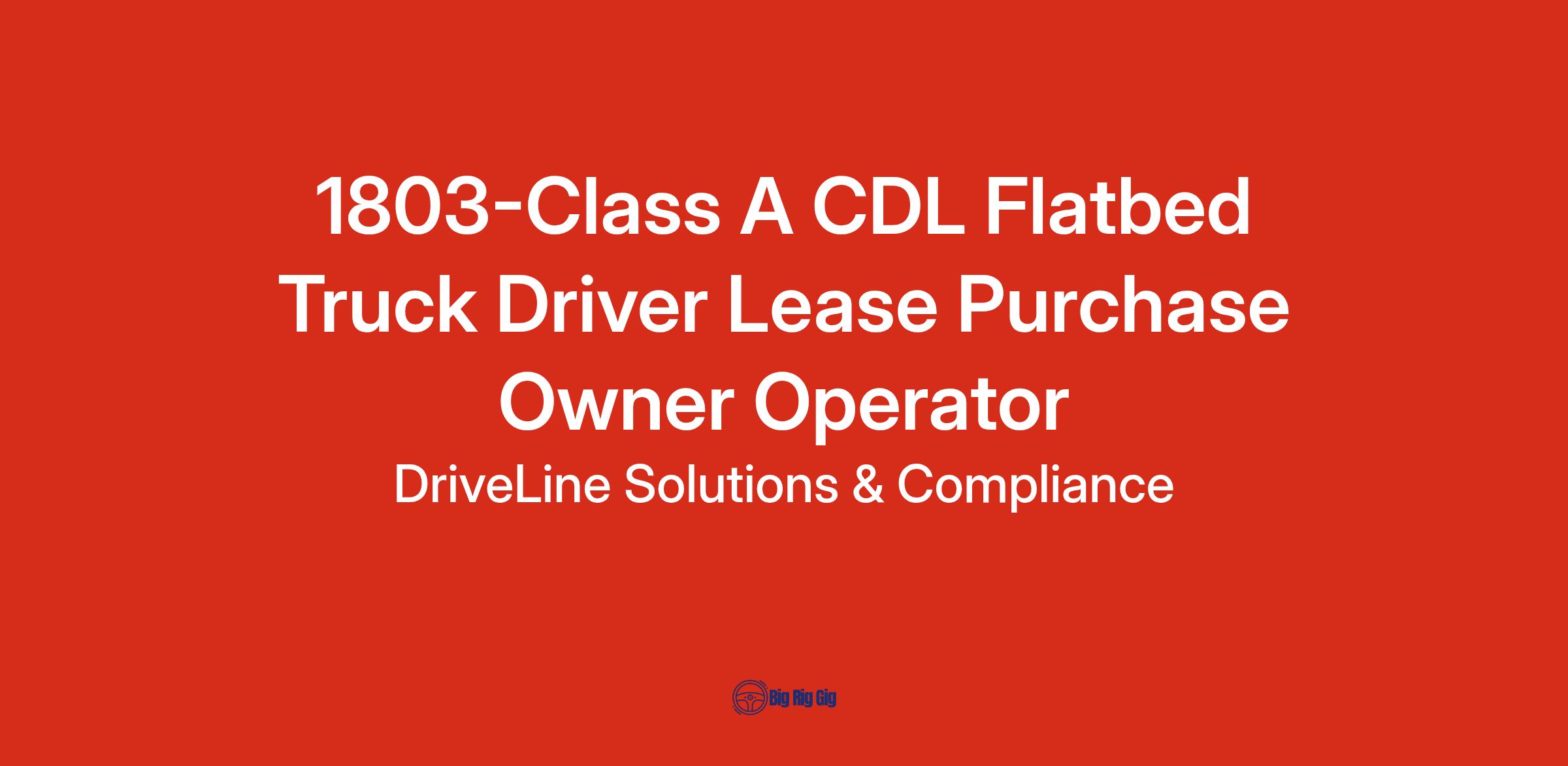 Class A CDL Flatbed Truck Driver Lease Purchase Owner OperatorStart ASAP!POSITION DETAILS: