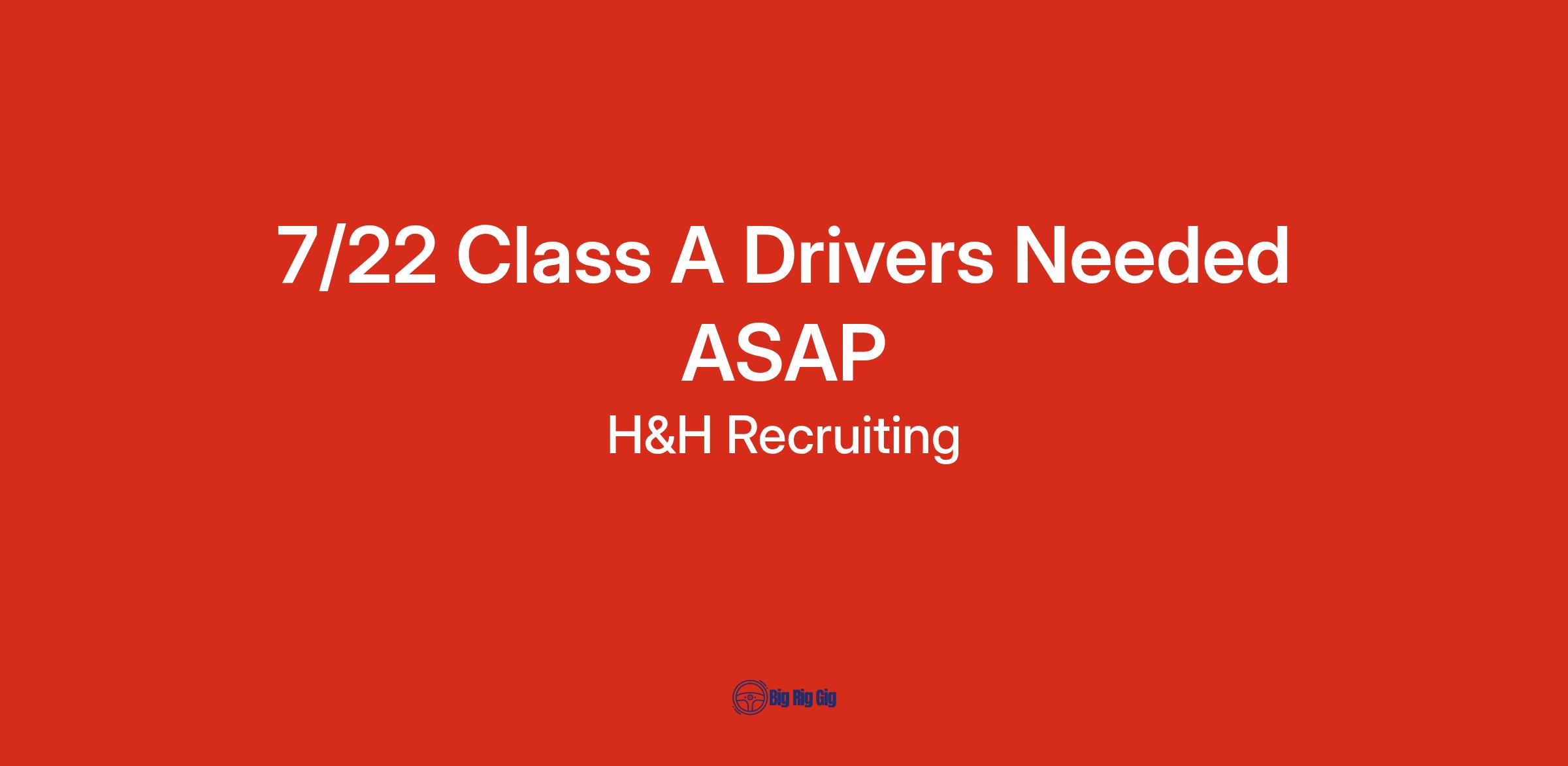 7/22 Class A Drivers Needed ASAP