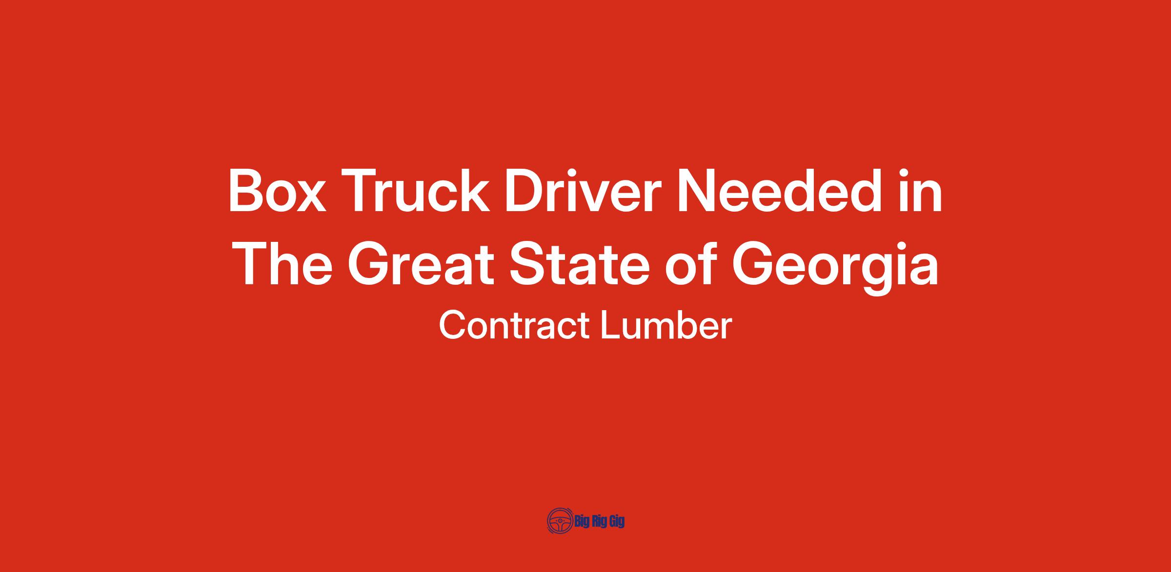 Box Truck Driver Needed in The Great State of Georgia!
