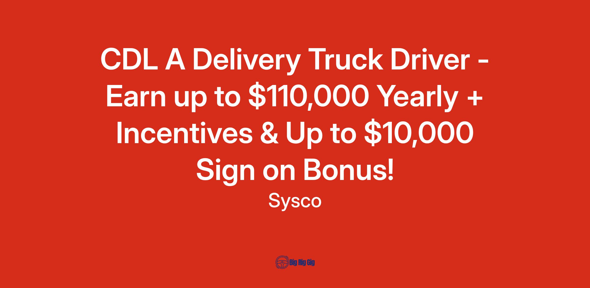 Sysco is more than just a place to work. Our passion for food and our customers has made us the industry leader. To remain on top, we will continue to think bigger, work harder and never give up. It takes a special kind of CDL A Delivery Truck Driver to work for Sysco. Are you ready to drive success?