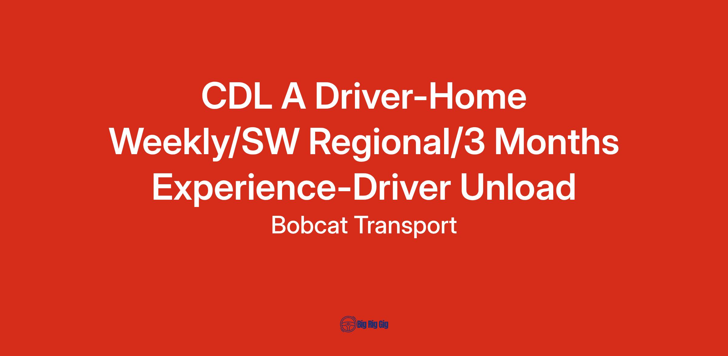 CDL A Driver-Home Weekly/SW Regional/3 Months Experience-Driver Unload