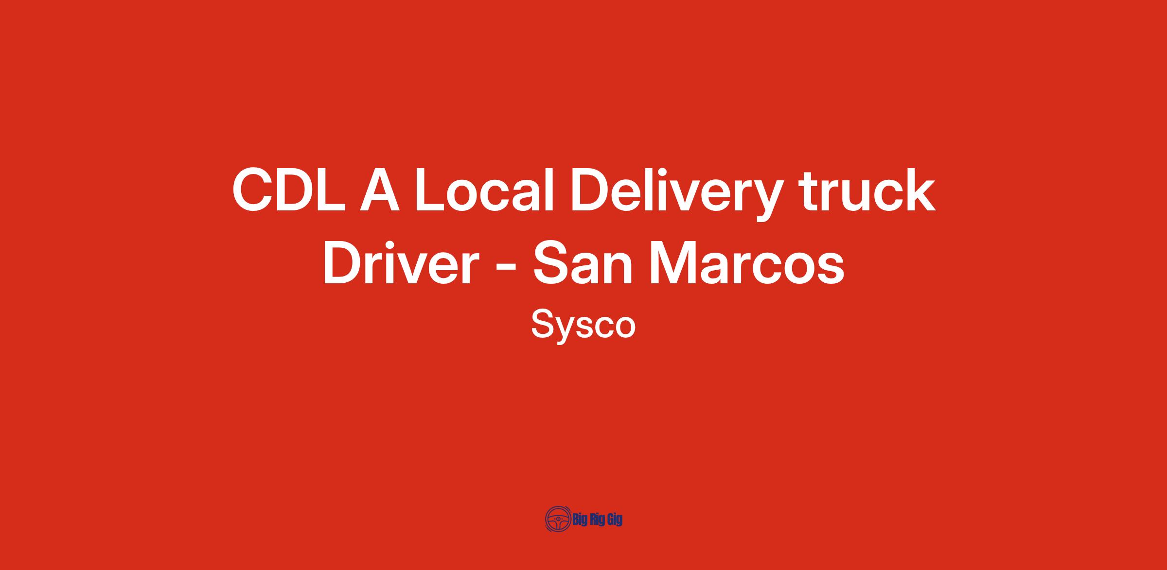 For information on Syscoβs Benefits, please visit https://SyscoBenefits.comCDL A Local Delivery Truck Driver - San Marcos