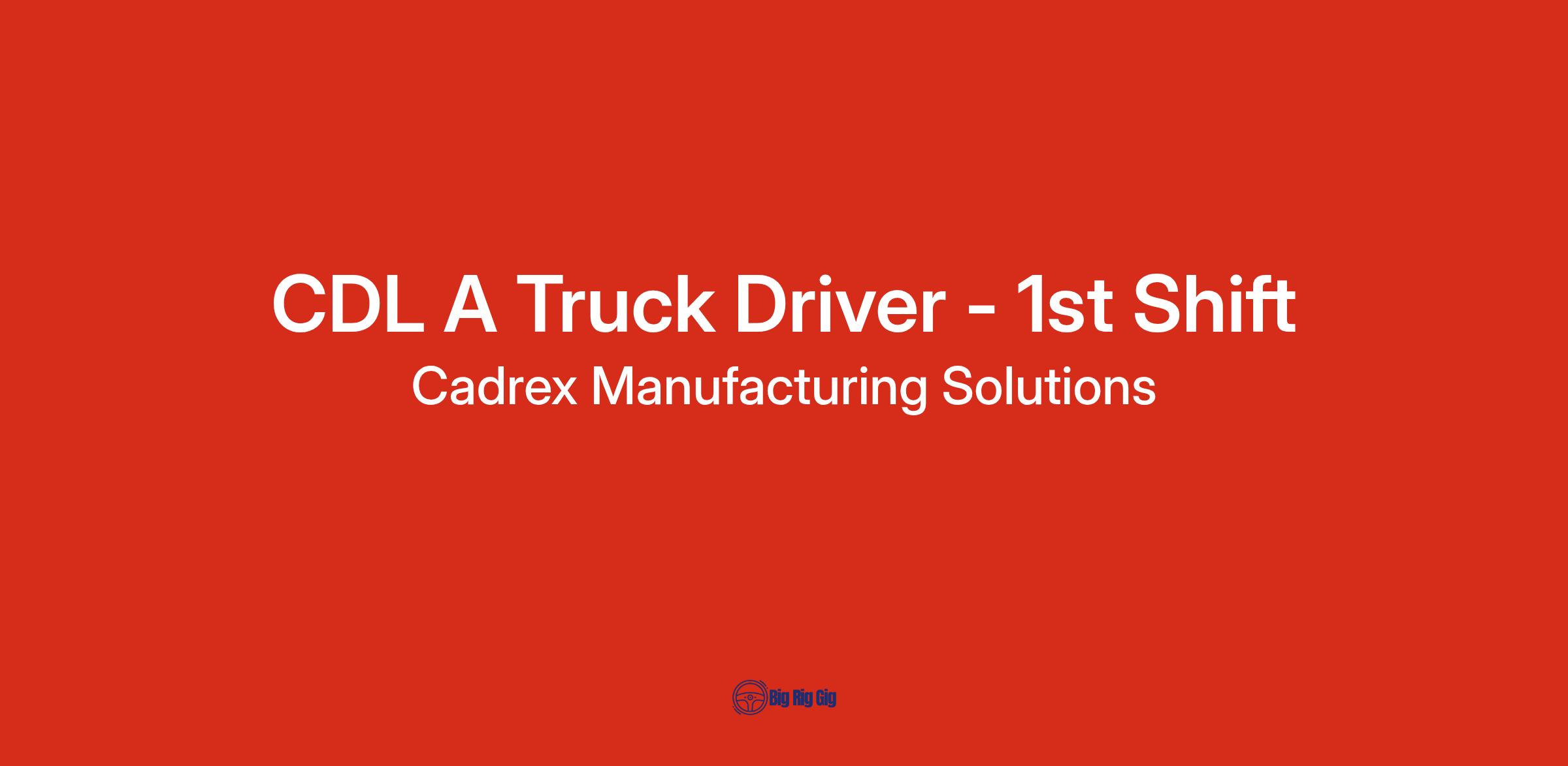 Cadrex is searching for a Truck Driver who will be responsible for the safe and timely transportation of raw materials, components, and finished goods between manufacturing facilities, suppliers, and customers. This role ensures that deliveries are completed in accordance with company policies, safety regulations, and delivery schedules. The driver will also be responsible for vehicle inspections, load securement, and maintaining accurate records of shipments.