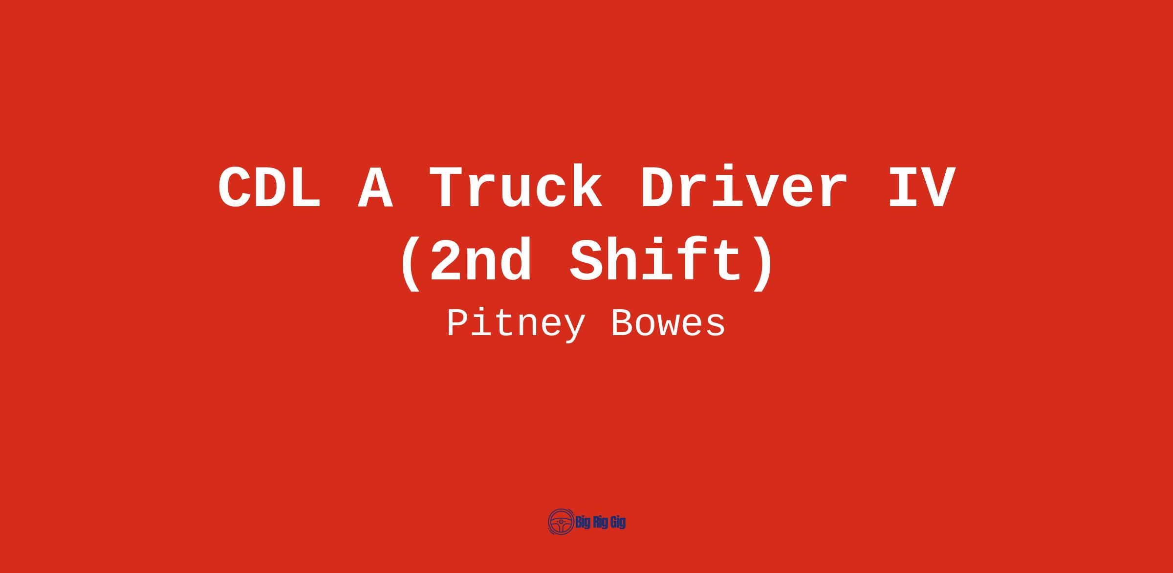 Pitney Bowes is hiring for a CDL A Truck Driver IV for our Aurora, IL facility.