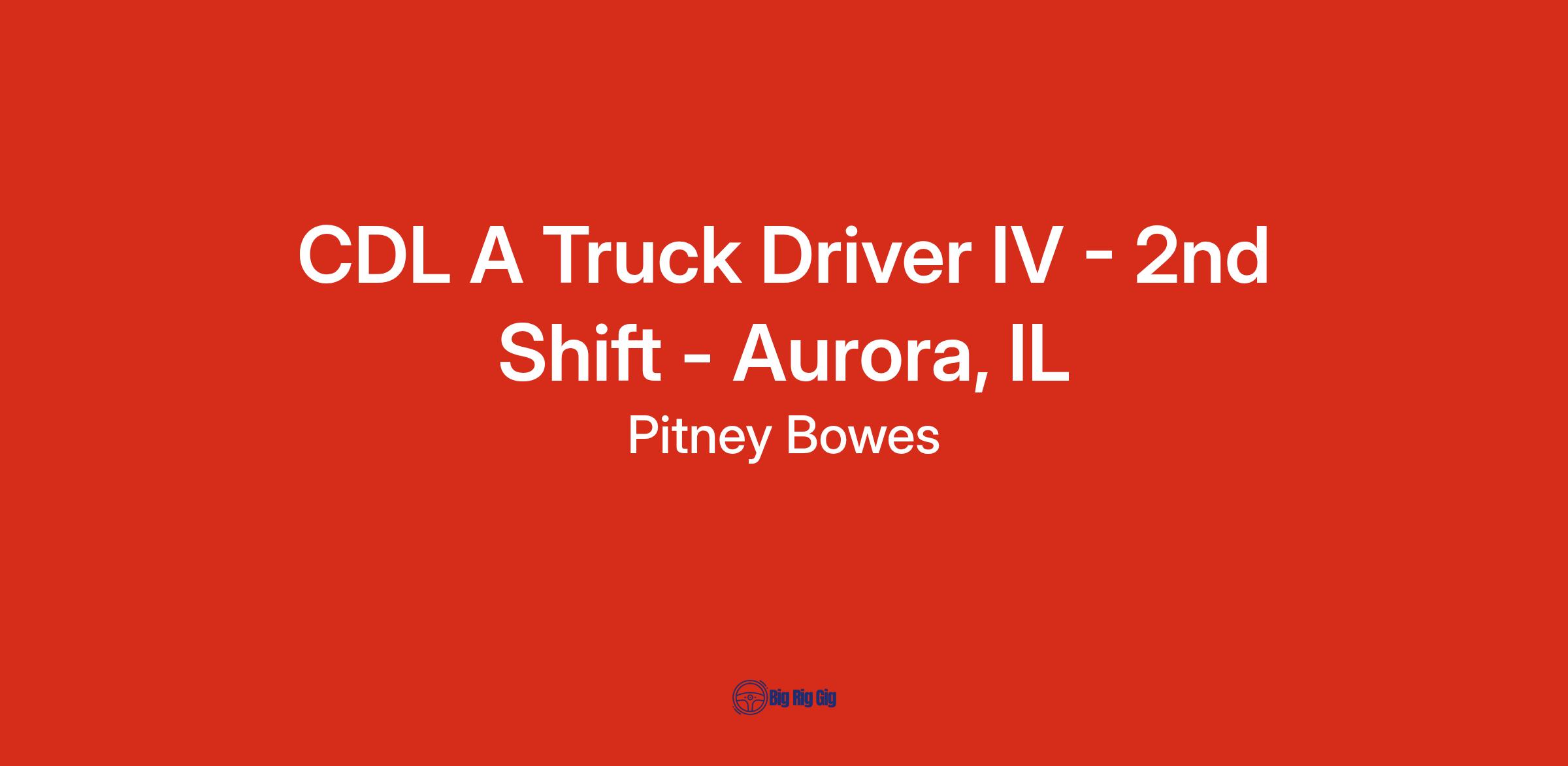 Pitney Bowes is hiring for a CDL A Truck Driver IV for our Aurora, IL facility.