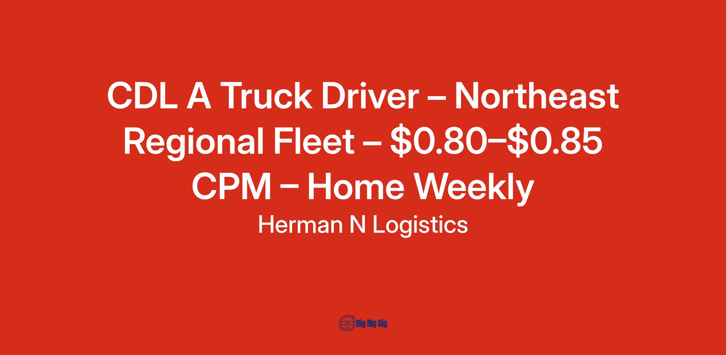 Position: CDL A Truck Driver – Northeast Regional Fleet