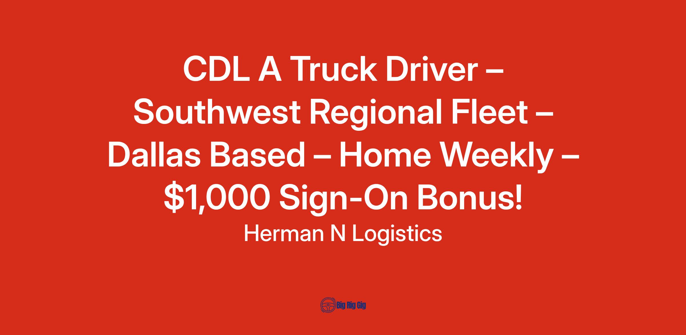 CDL A Truck Driver – Southwest Regional Fleet – Dallas Based – Home Weekly – $1,000 Sign-On Bonus!