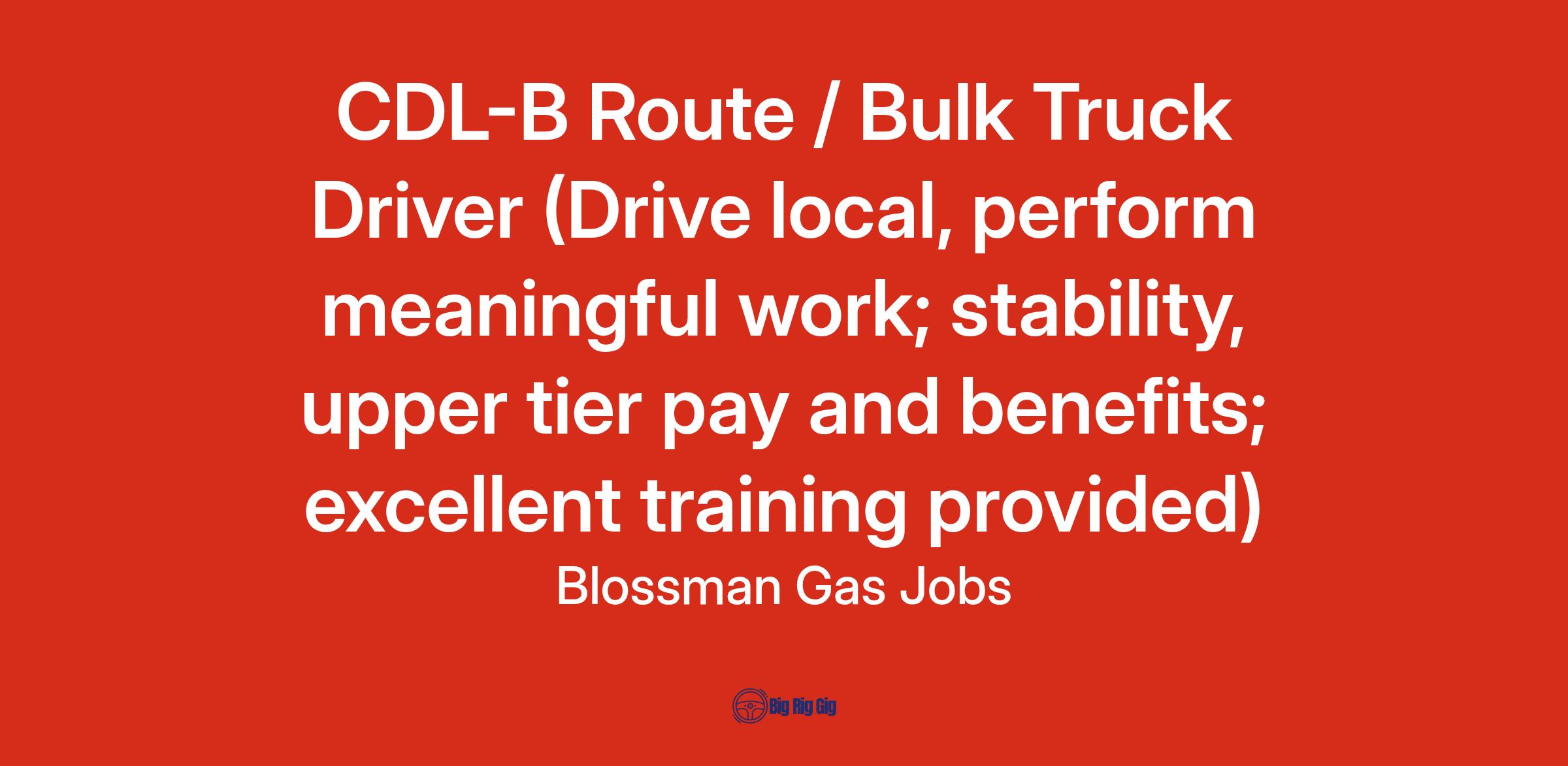 To be successful, this position needs someone who enjoys customer service, relationship selling, and being a contributing member of teamwork environment while championing Blossman's core line of products and services. Driving and delivering in all-weather conditions is needed.Β A strong commitment to safety, consistent with company policy, is a must but we have ongoing education to help you. Regular bending, lifting and pulling are associated with this job so drivers who appreciate activity during their day enjoy the autonomy associated with our delivery process. This position will require a valid CDL with hazmat and tanker endorsements within 90 days of hire, so a clean driving record is needed. We can help you with this process which will help you with your career path with us.