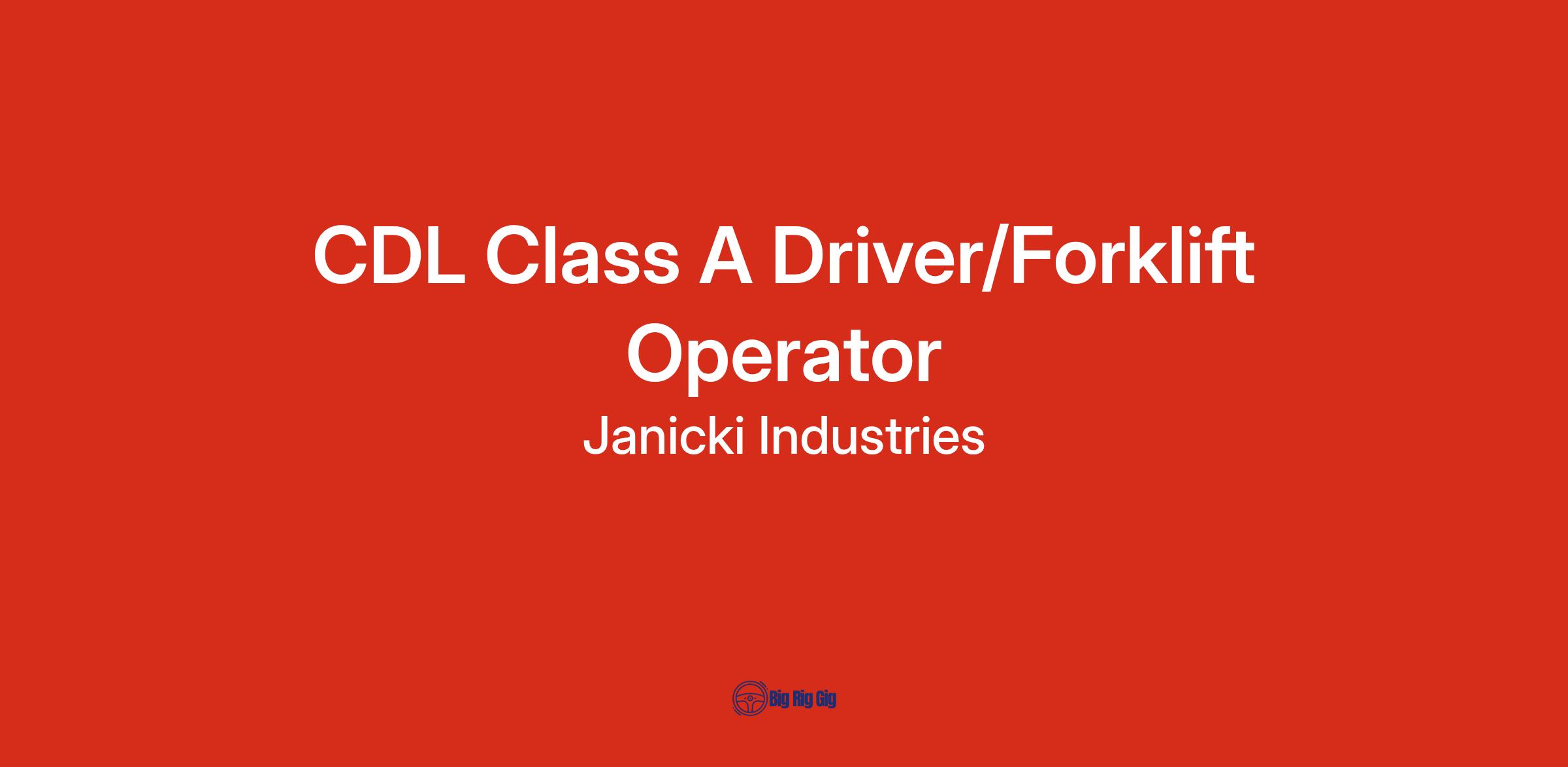 Janicki Industries is an innovative, family-owned aerospace company located at the foot of the Cascades. We focus on engineering and manufacturing complex projects for companies in the aerospace, defense, and space industries. We are looking for a CDL Class A Driver/Forklift Operator to join our growing team.