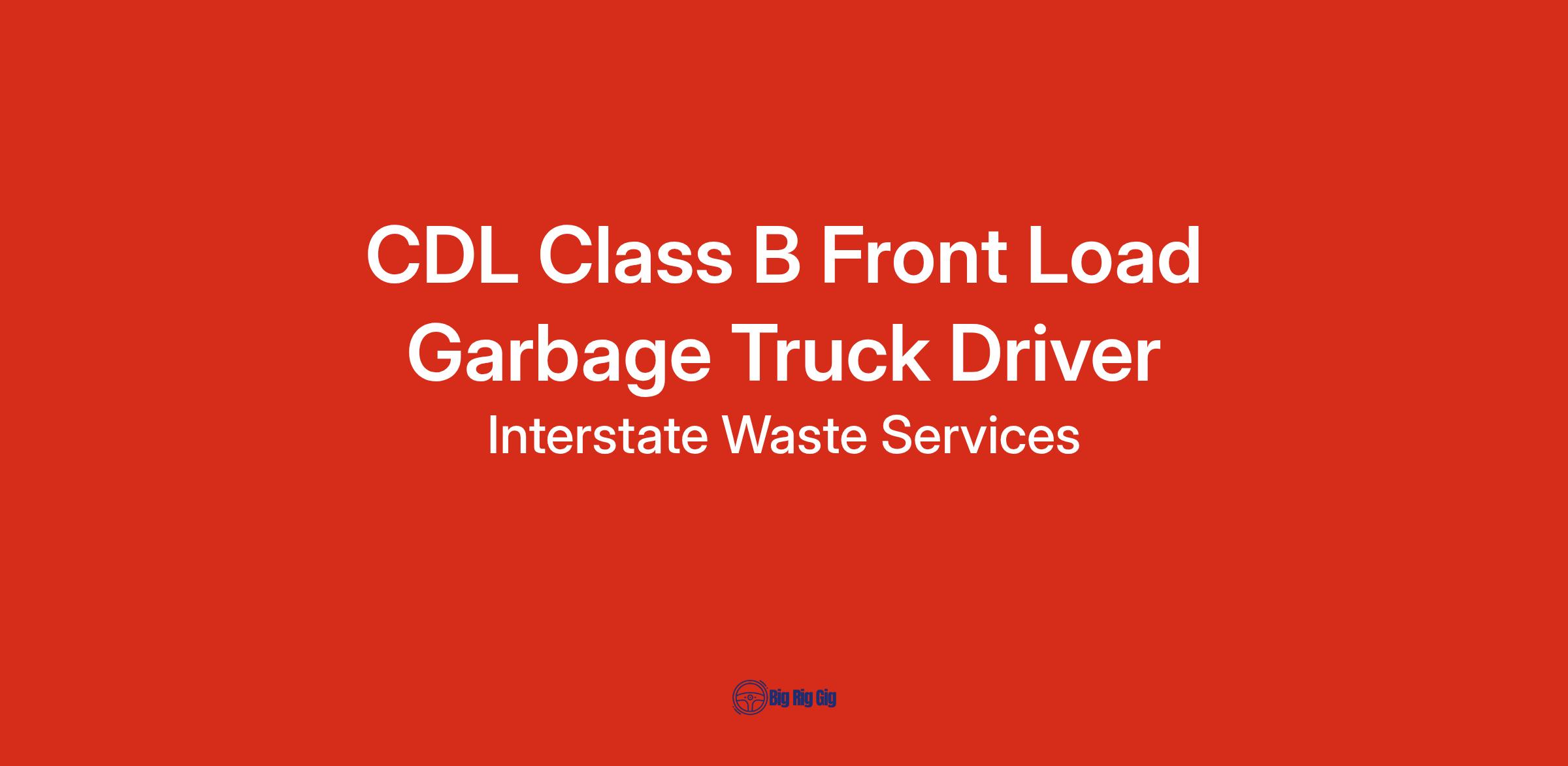 Interstate Waste Services is Now Hiring CDL B Front Load Garbage Truck Drivers!