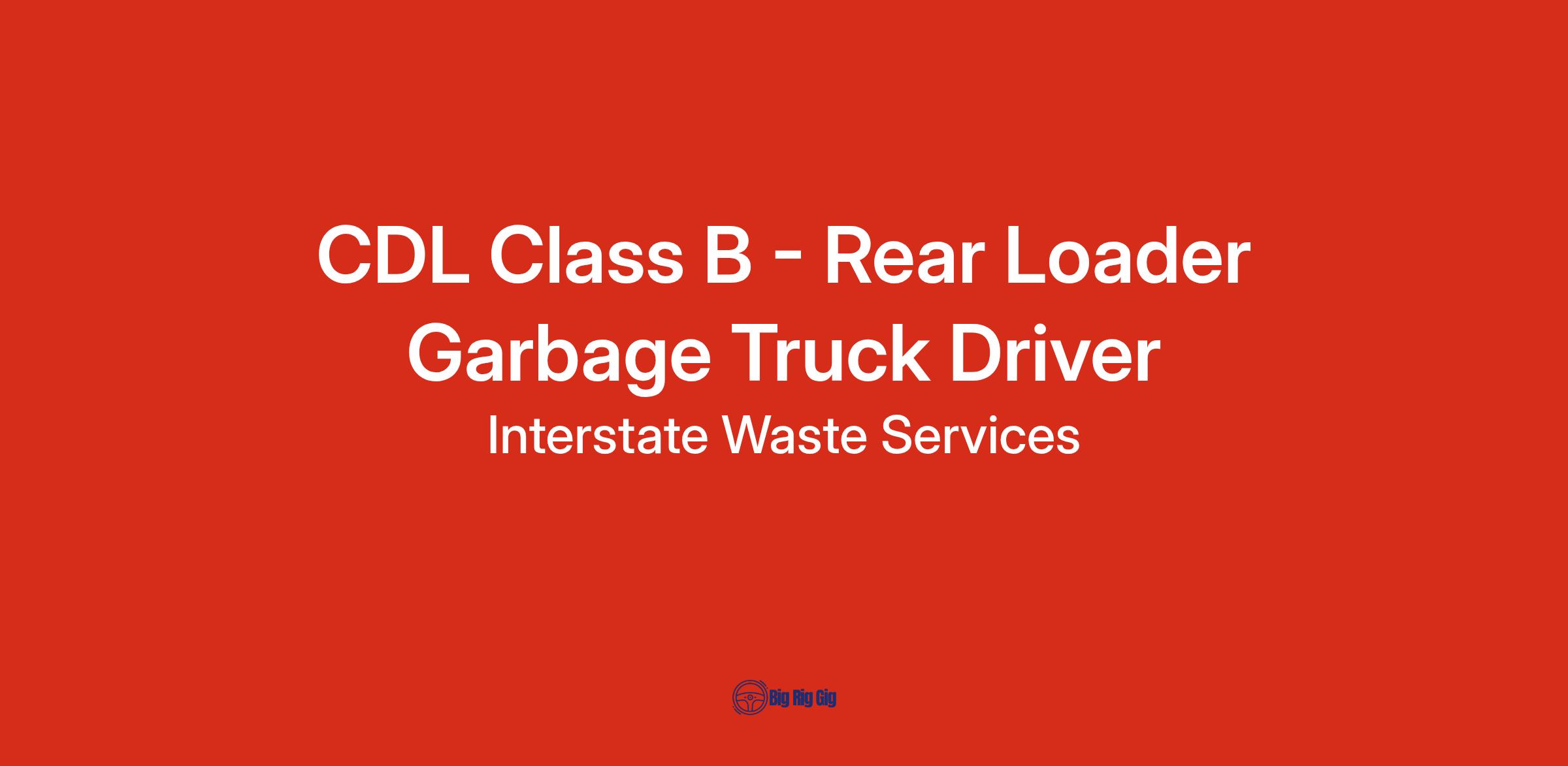 Interstate Waste Services is Now Hiring CDL B REAR LOAD Truck Drivers!