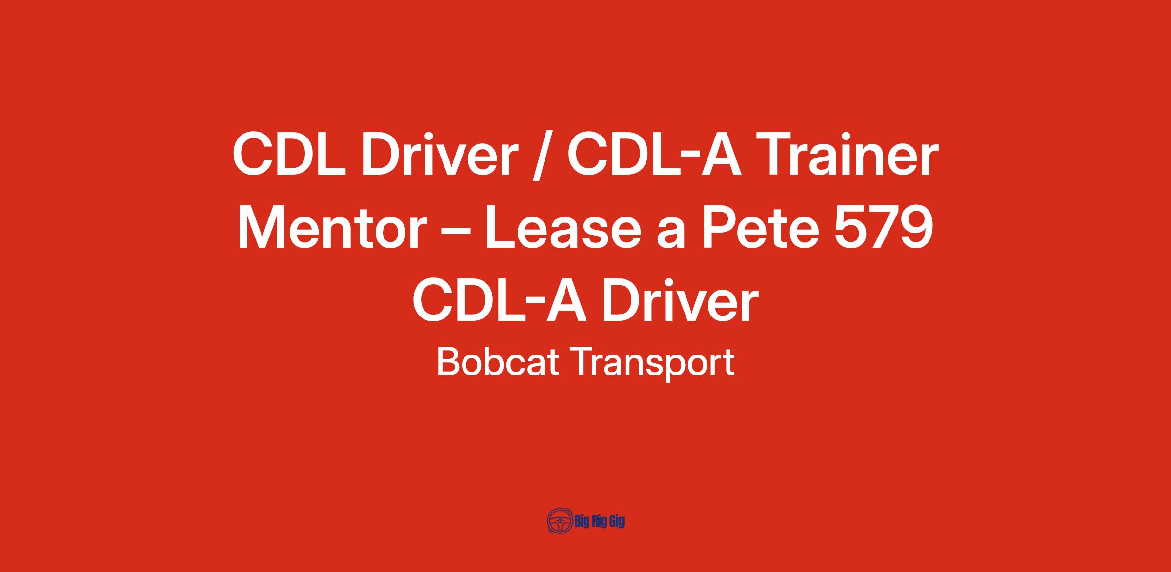CDL Driver / CDL-A Trainer Mentor – Lease a Pete 579 CDL-A Driver