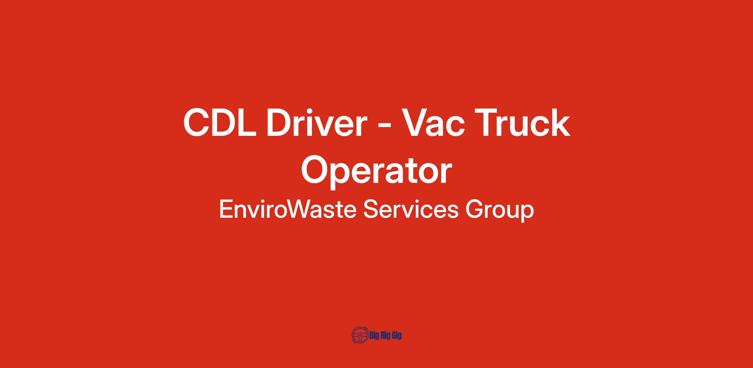 Position: CDL B Driver / Vac Truck Operator