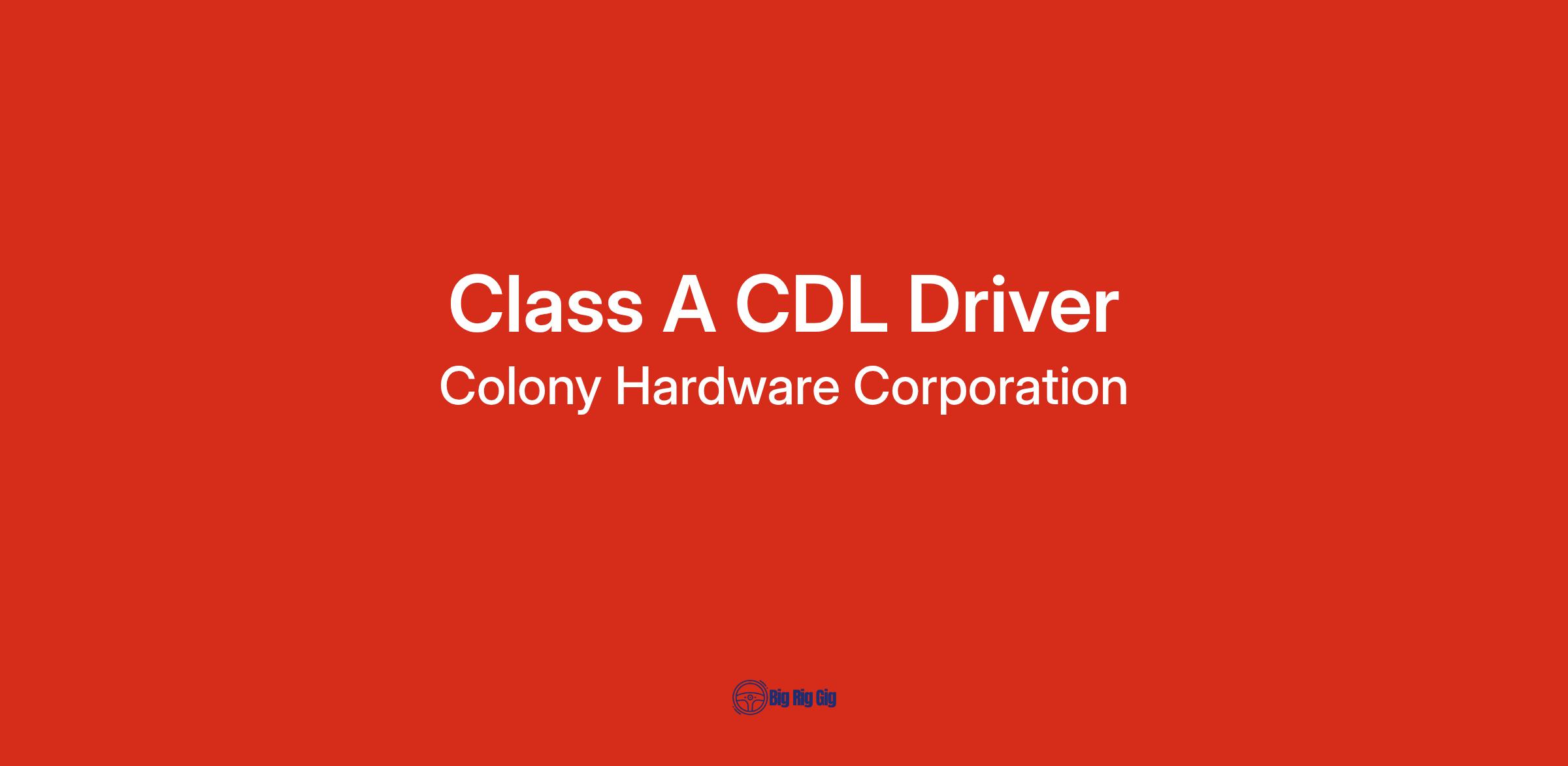As a CDL A Driver with Colony Hardware, you will be the backbone of our company who make our mission to provide top quality products to commercial contractors and industrial accounts come alive. To do this, you will utilize your eagerness to do what’s expected to ensure that our customers are getting what they need, when they need it!