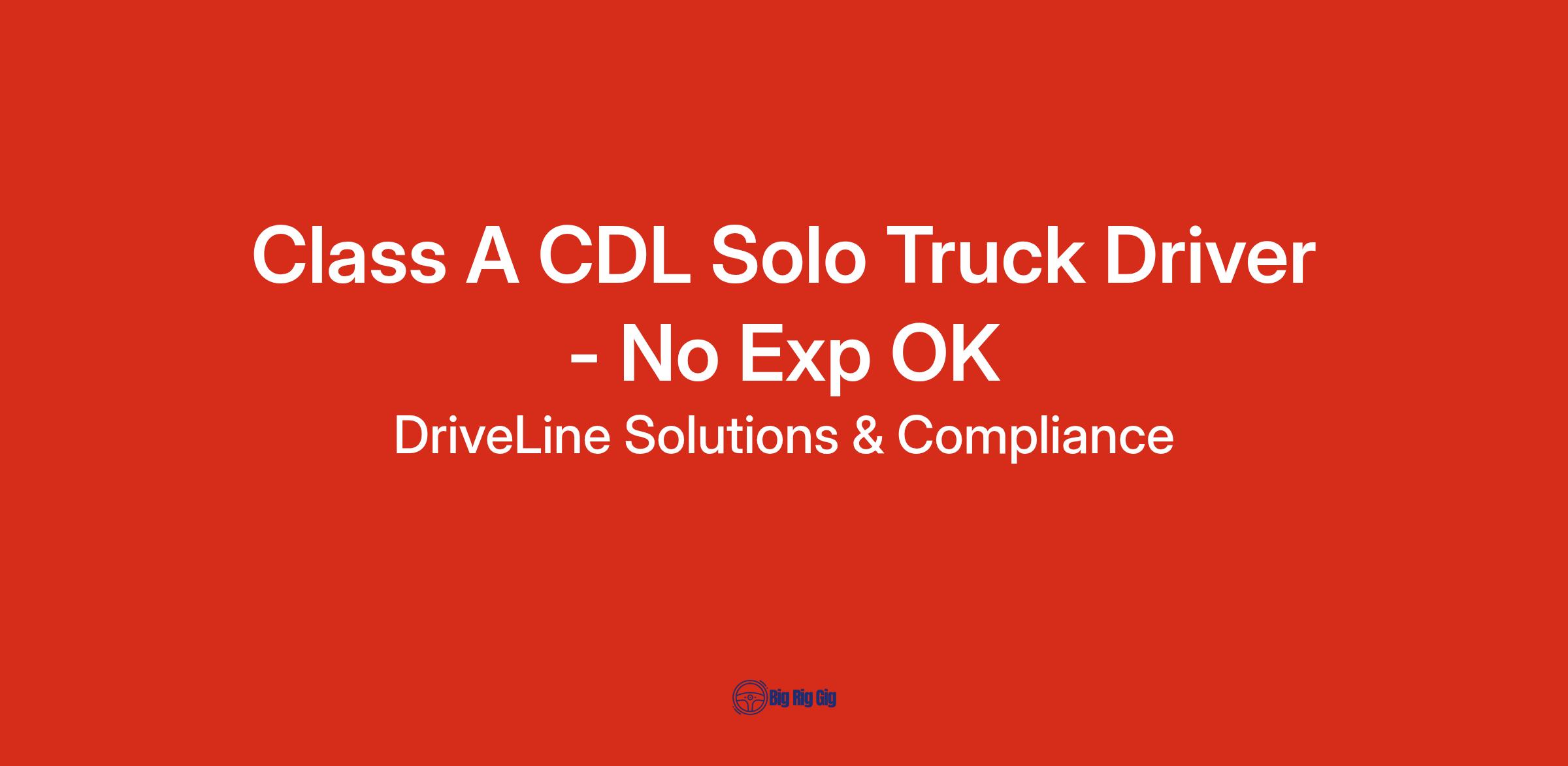 Class A CDL Solo Truck Driver - No Exp OKFull Time, Permanent, Immediate Start PositionPOSITION DETAILS