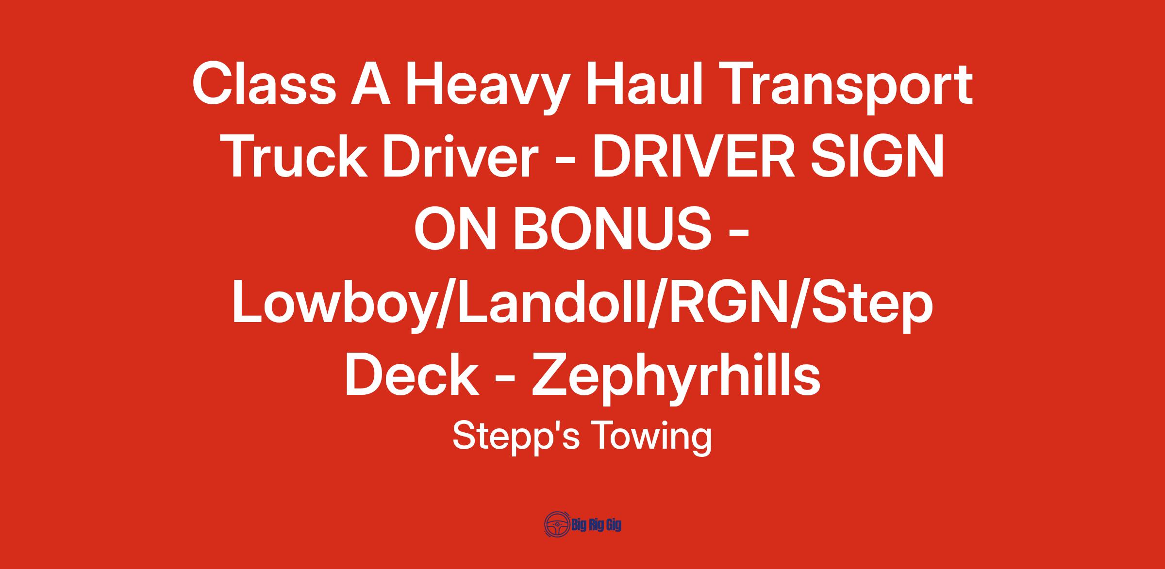 Class A Heavy Haul Transport Truck Driver - DRIVER SIGN ON BONUS - Lowboy/Landoll/RGN/Step Deck - Zephyrhills