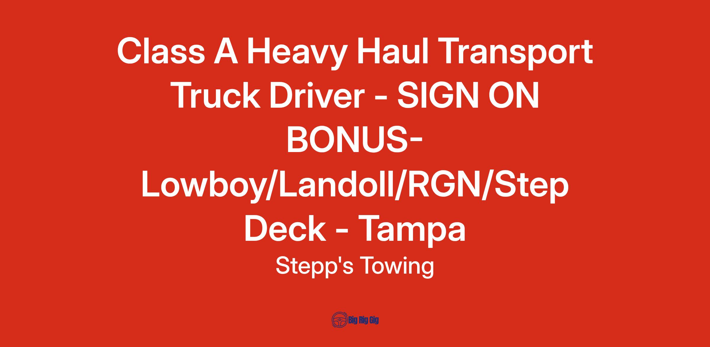 Class A Heavy Haul Transport Truck Driver - SIGN ON BONUS- Lowboy/Landoll/RGN/Step Deck - Tampa