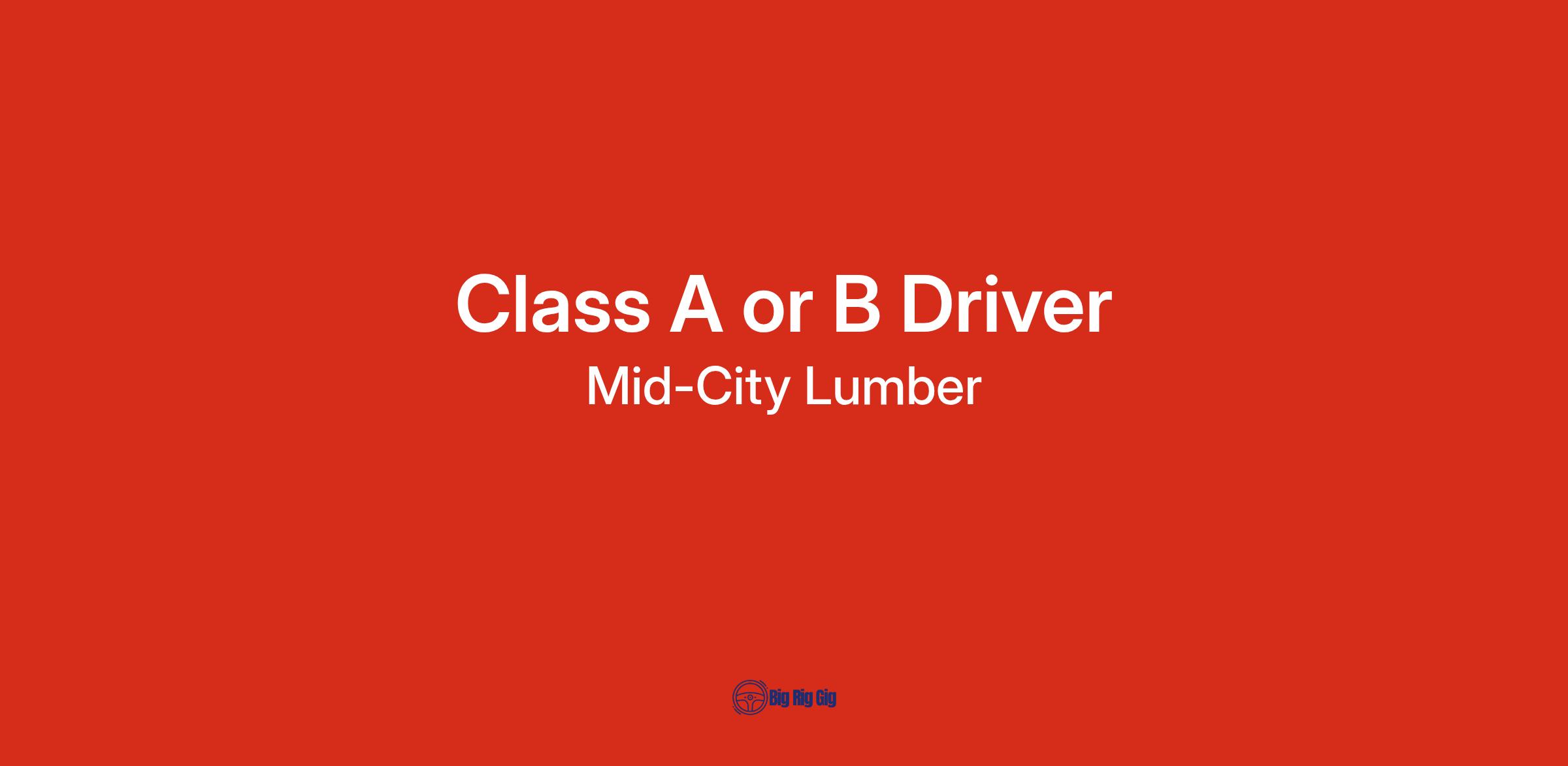 Join Mid City Lumber LTD as a Full-Time Class A or B Driver and experience the thrill of working in a dynamic, onsite environment right here in Columbia, MO! Enjoy the excitement of delivering top-quality lumber while playing a vital role in our construction operations. With a competitive pay of $17.00 per hour, you'll find that your hard work is rewarded. Plus, our fun and relaxed company culture fosters camaraderie and teamwork, making every day enjoyable. You will receive great benefits such as Medical, Dental, Vision, 401(k), Life Insurance, Health Savings Account, Flexible Spending Account, Competitive Salary, Paid Time Off, Snack/Drink Room, and Referral Program. If you're ready to drive your career forward and contribute to our mission of excellence and innovation, apply today!