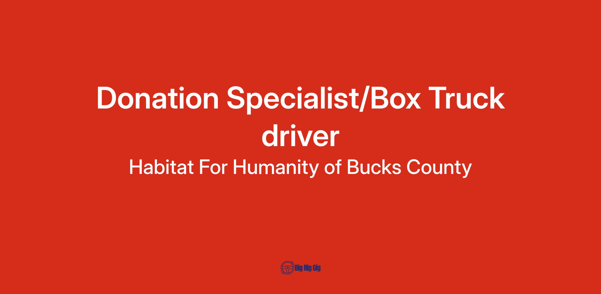 The Donation Specialist plays a pivotal role in representing the Habitat brand by engaging in courteous interactions with customers to further our mission. This position supports ReStore retail sales operations by efficiently picking up and unloading donations, including furniture and large appliances, while promoting teamwork. The Donation Specialist, a box truck driver, is integral to the thrift store team, ensuring that donated goods are handled with care for resale and maintaining our trucks and equipment at optimal levels. This position is ideal for someone with experience in furniture moving and hauling.