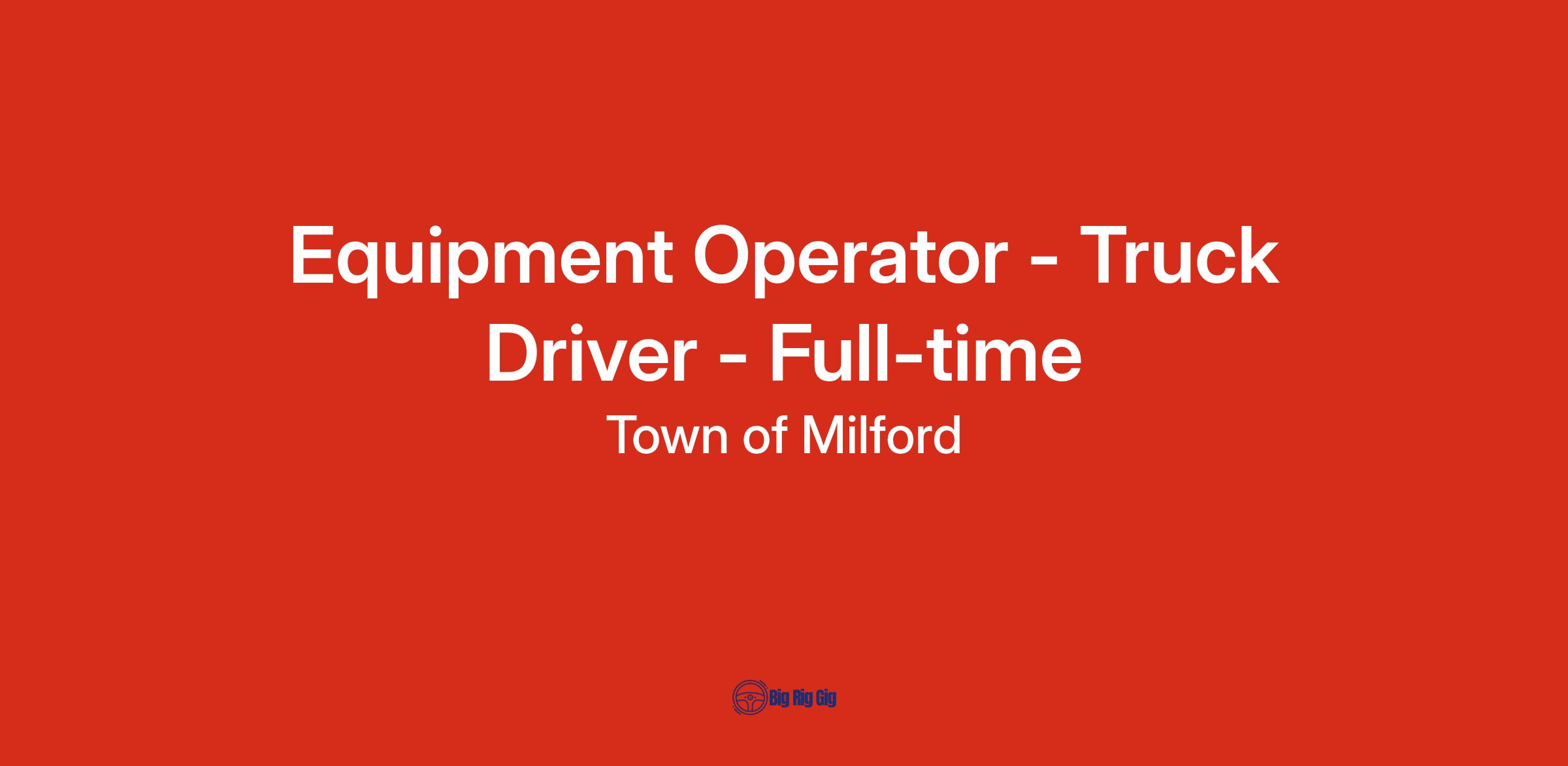 The Town of Milford - DPW has an immediate opening for a Truck Driver/Equipment Operator. This is a full-time (40/hrs/wk) union position with the Town of Milford and reports directly to the Director or Highway Foreman or designee.