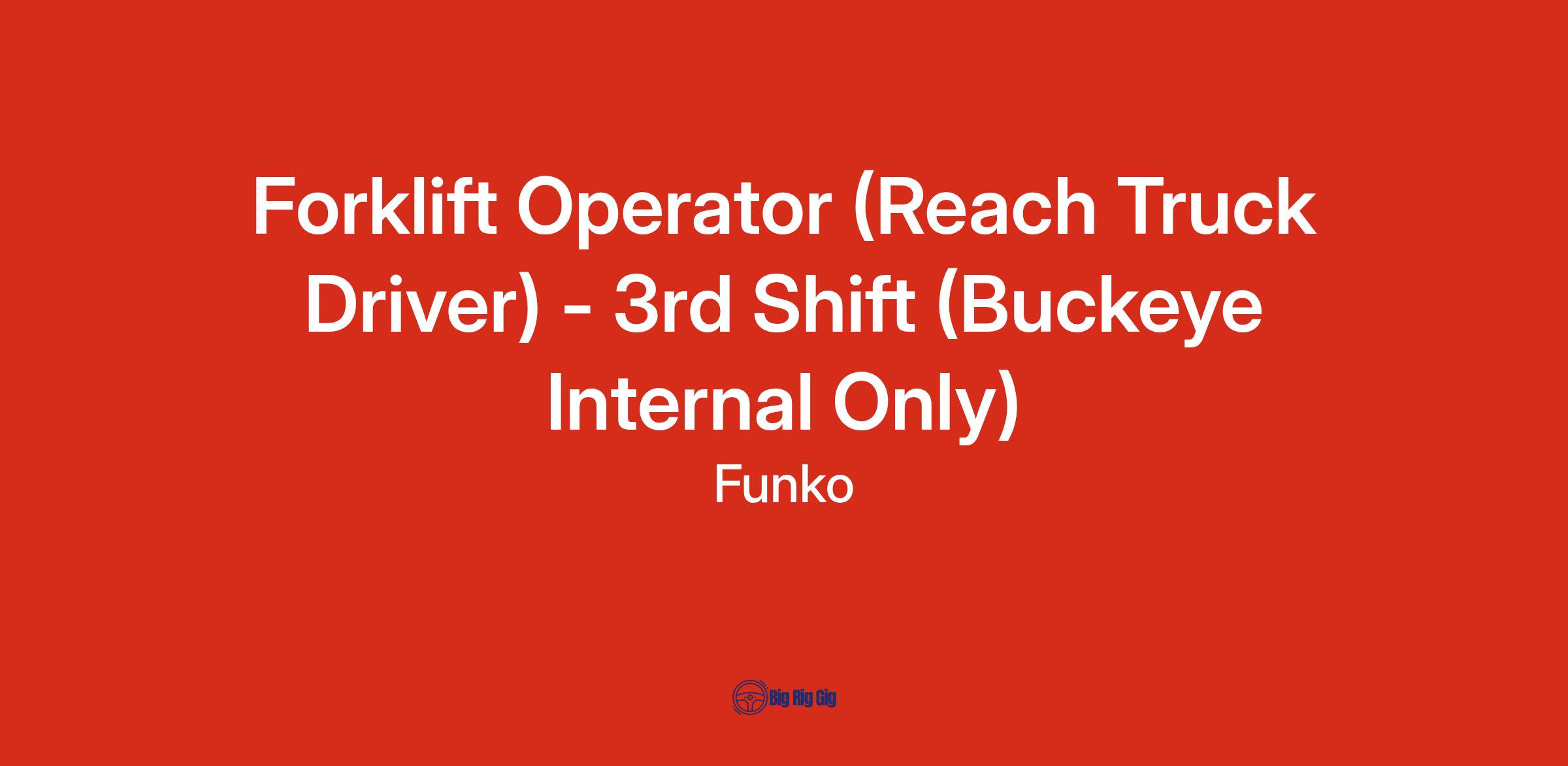 Here at the Funko Distribution Center we are one building ensuring we always deliver to our fans putting Funko First. This position requires operating a Reach Truck in a distribution center environment. Requires ability to maneuver Reach Truck through narrow aisles, extracting pallets of product from multiple levels of racks while maintaining safe work practices. Requires use of a scanner to select/record placement/extraction of pallets of product accurately within scheduled time frame.