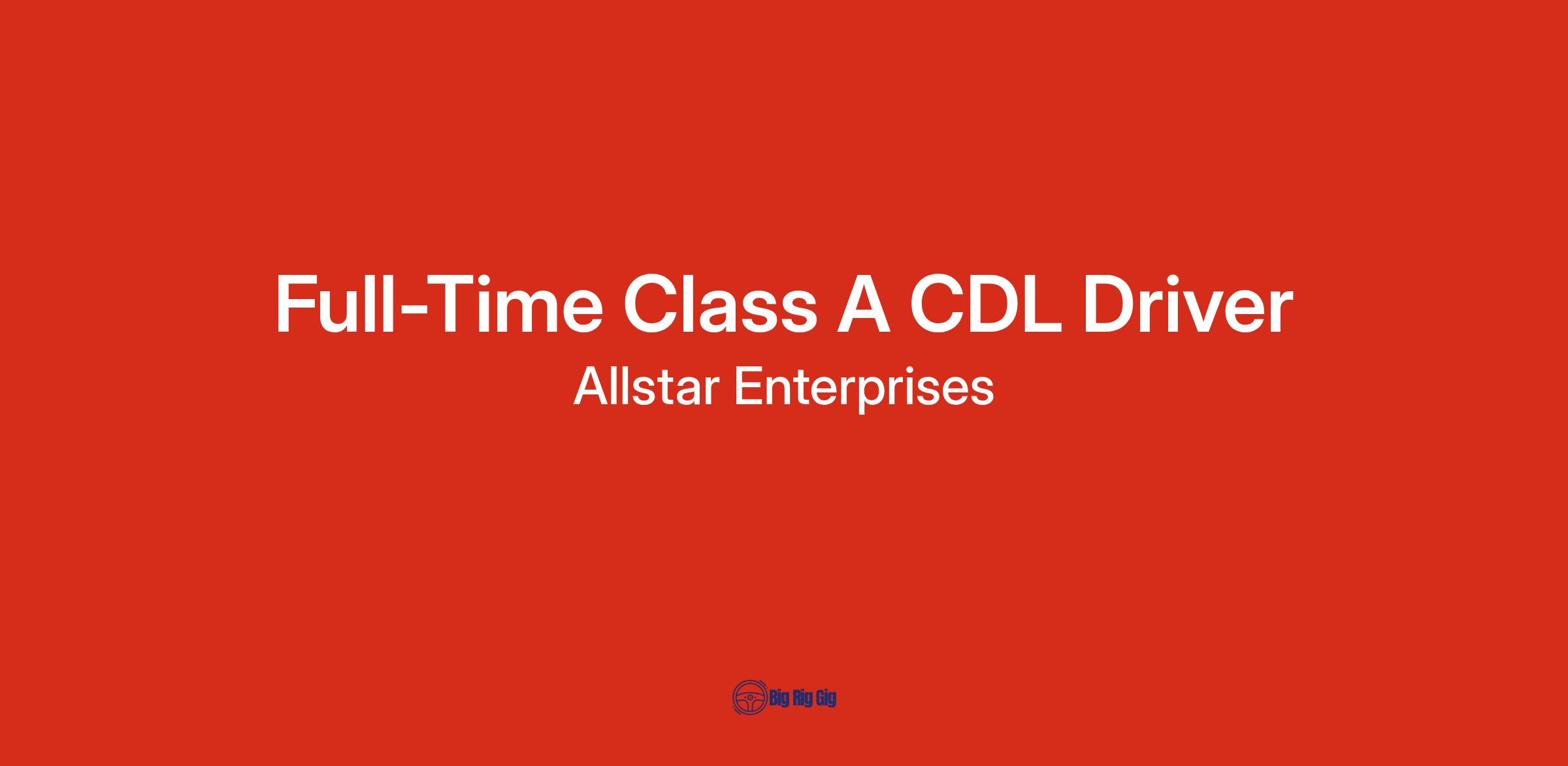 Job Summary: Allstar Enterprises LLC is actively seeking enthusiastic individuals to join our team as Full-time Class A CDL delivery drivers. This position offers local and regional routes, with drivers home most days. Routes are primarily drop-and-hook shipper pickups using 53ft dry van trailers provided by customers. Some live unloading may occur, but no manual loading/unloading is required on the driver’s part. In this position, you will deliver commercial products within 250 miles of Rockmart, GA.