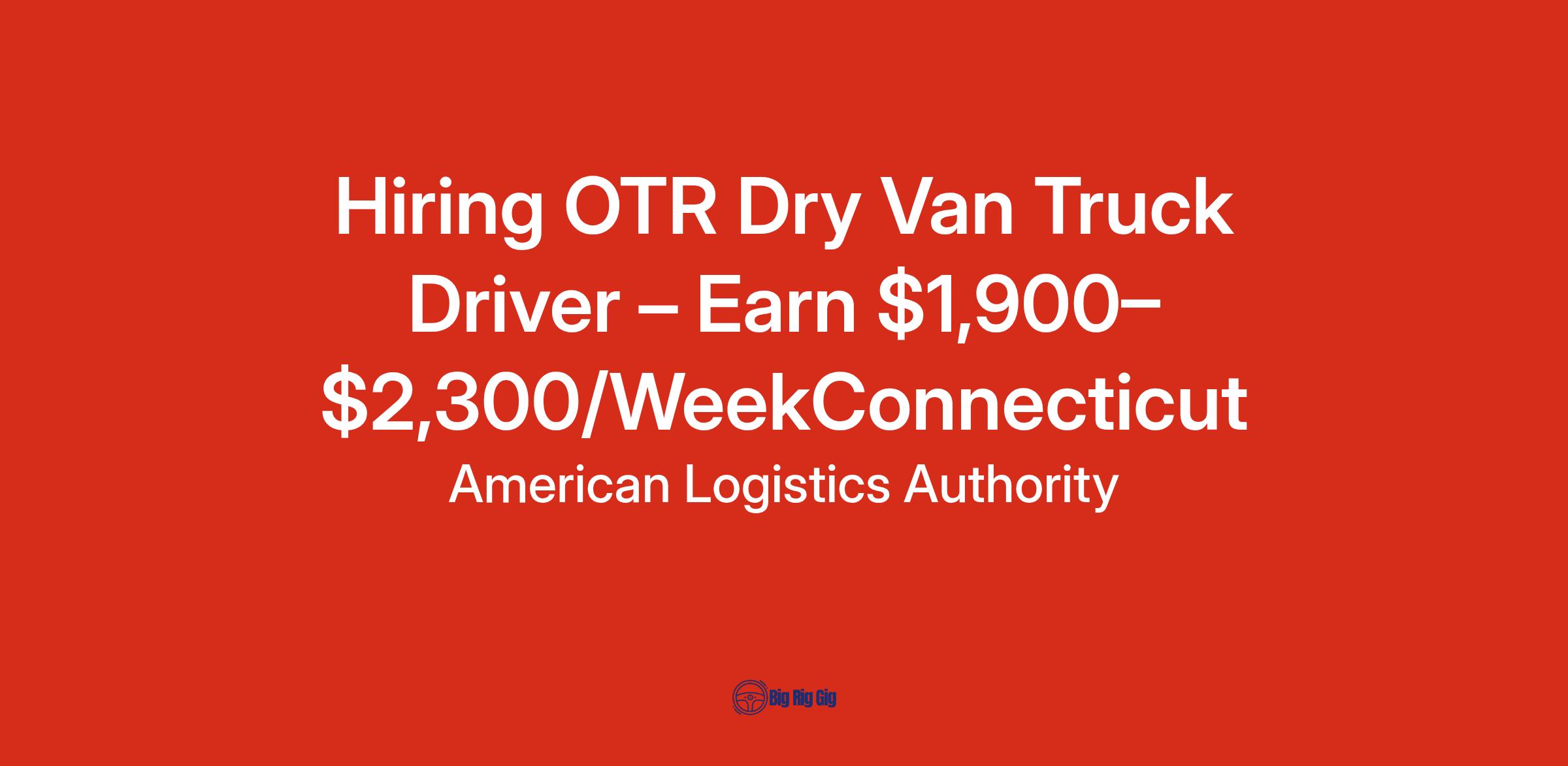 Hiring OTR Dry Van Truck Driver – Earn $1,900–$2,300/WeekConnecticut