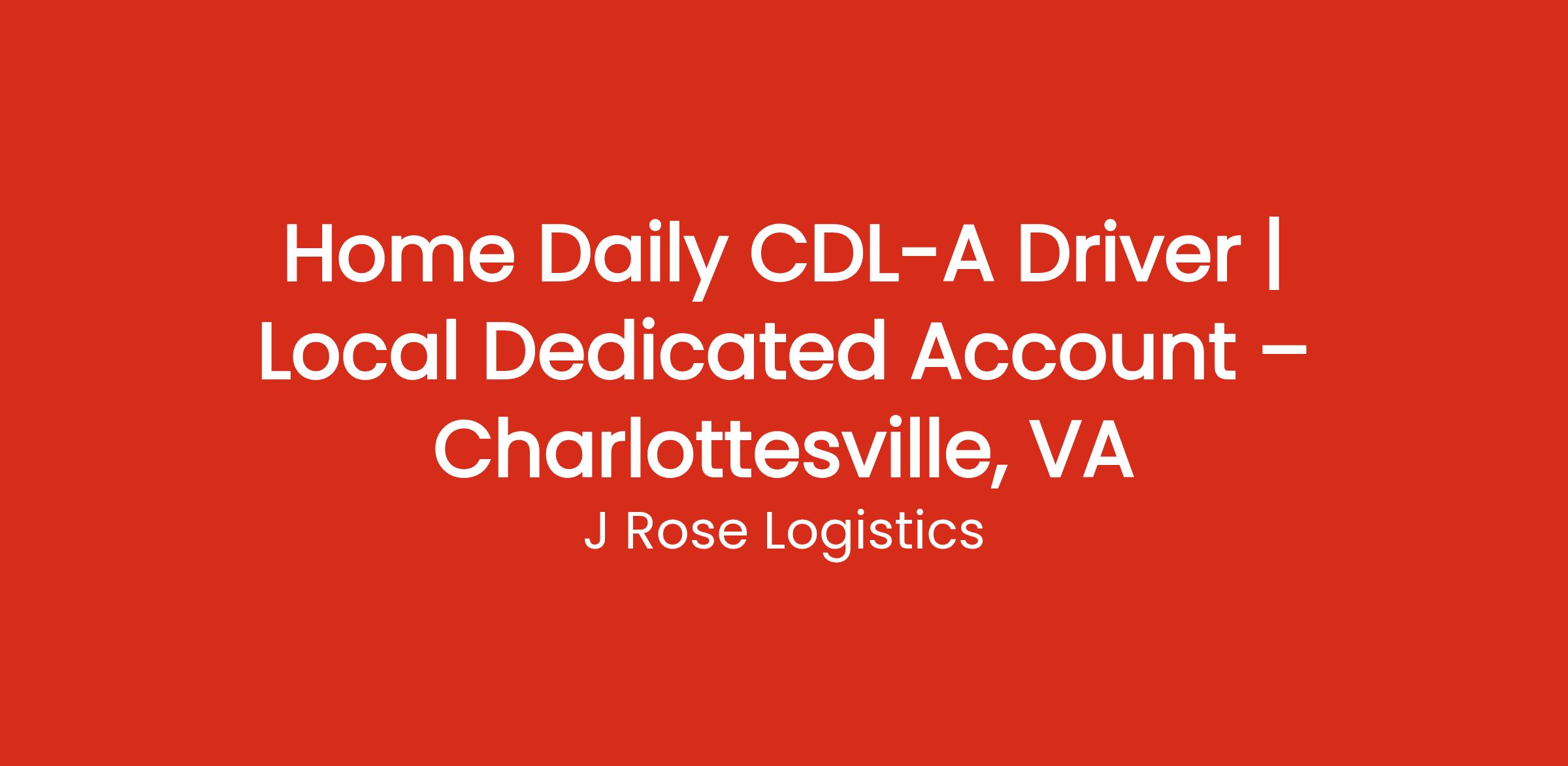 Home Daily CDL-A Driver | Local Dedicated Account – Charlottesville, VA