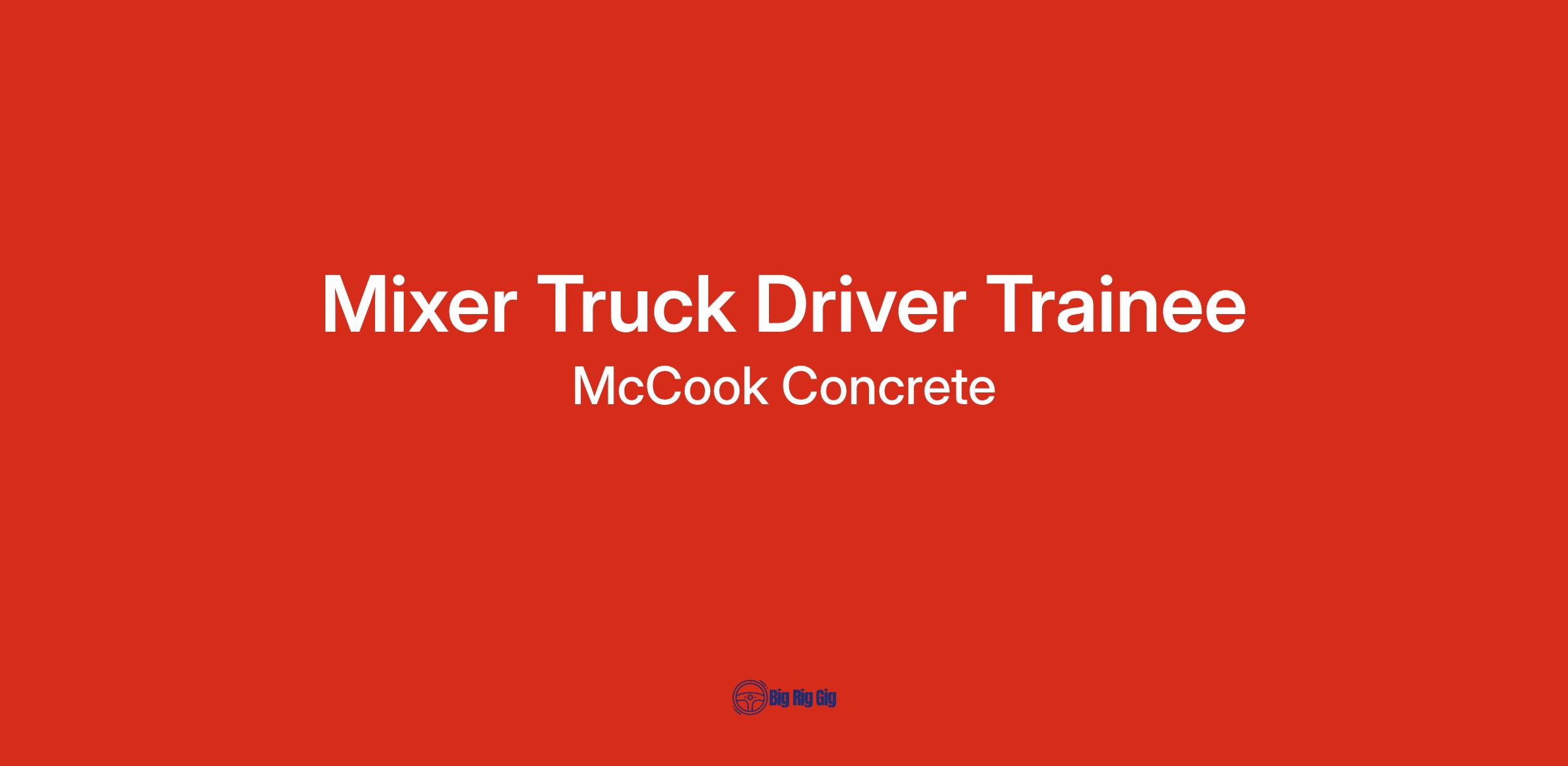 McCook Concrete, Inc. is looking to invest in a reliable, motivated individual that would like to earn a CDL! As a Mixer Truck Driver Trainee, you will undergo comprehensive training to obtain your Commercial Driver's License (CDL) permit and Class B CDL. Upon obtaining your CDL, you will enjoy a pay raise and continue your training to become a Mixer Truck Driver.