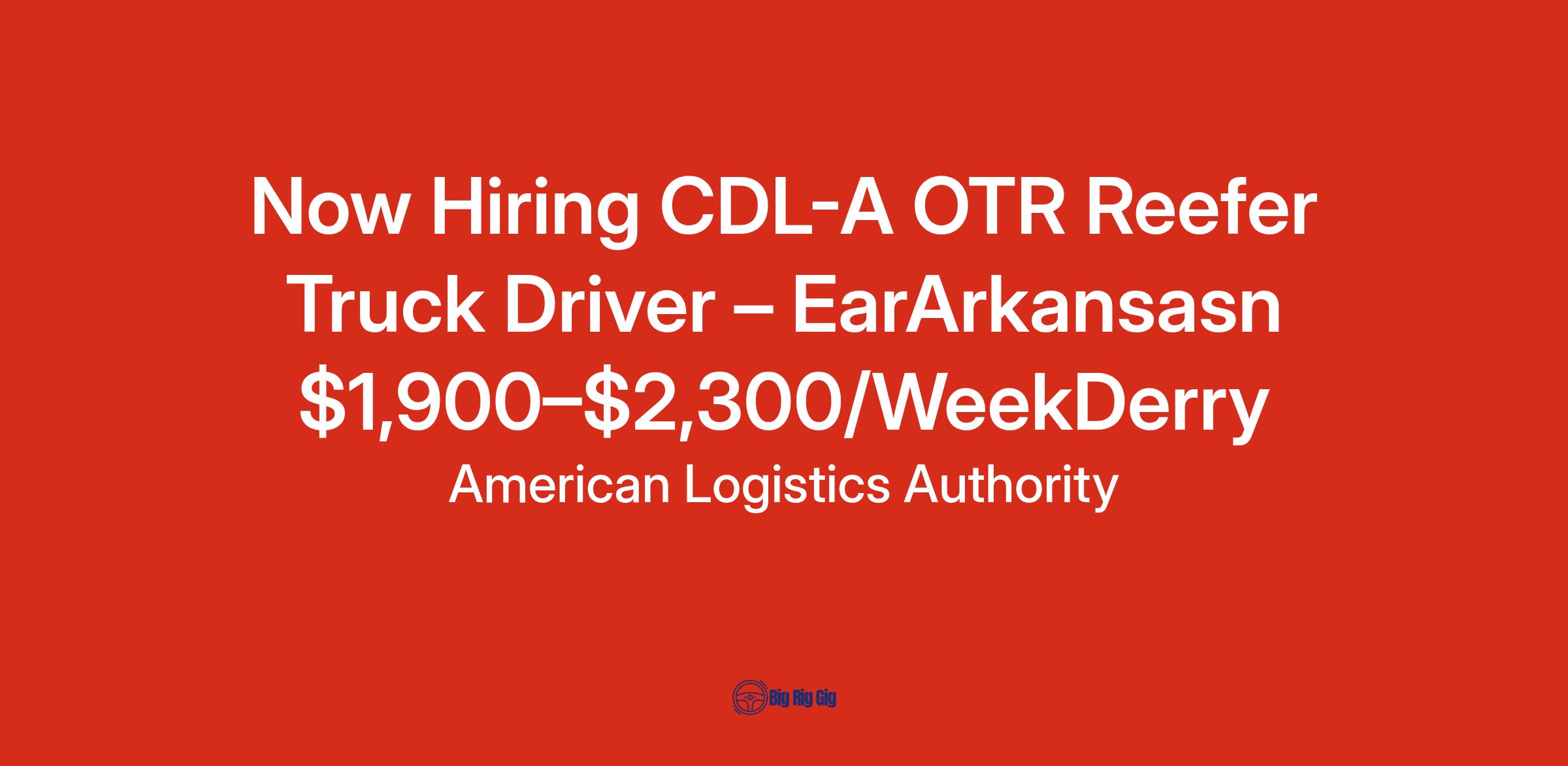 Now Hiring CDL-A OTR Reefer Truck Driver – EarArkansasn $1,900–$2,300/WeekDerry
