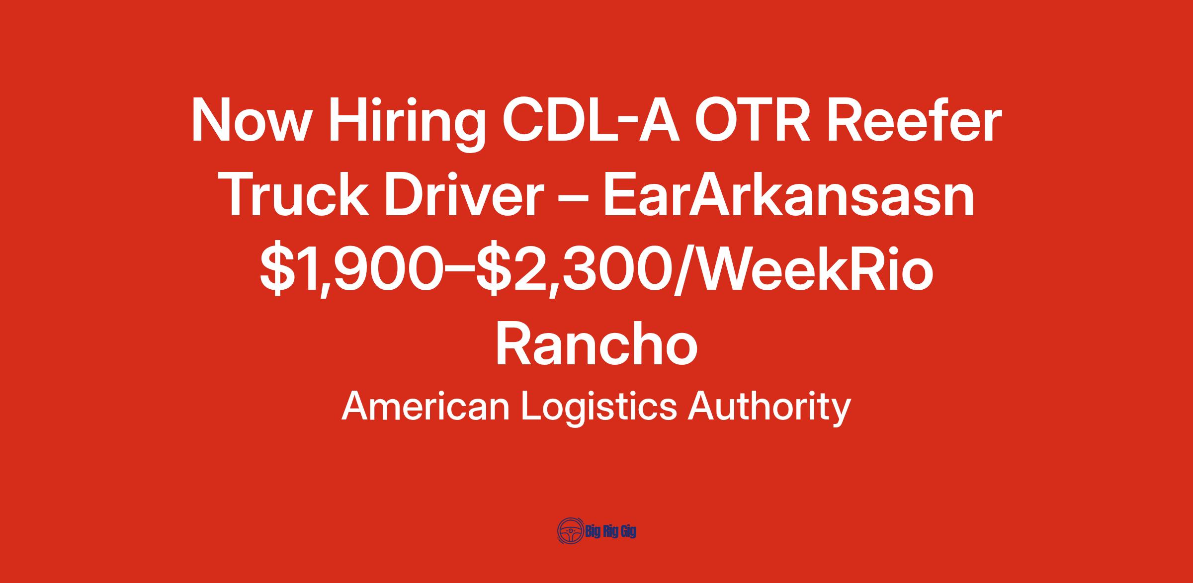 Now Hiring CDL-A OTR Reefer Truck Driver – EarArkansasn $1,900–$2,300/WeekRio Rancho
