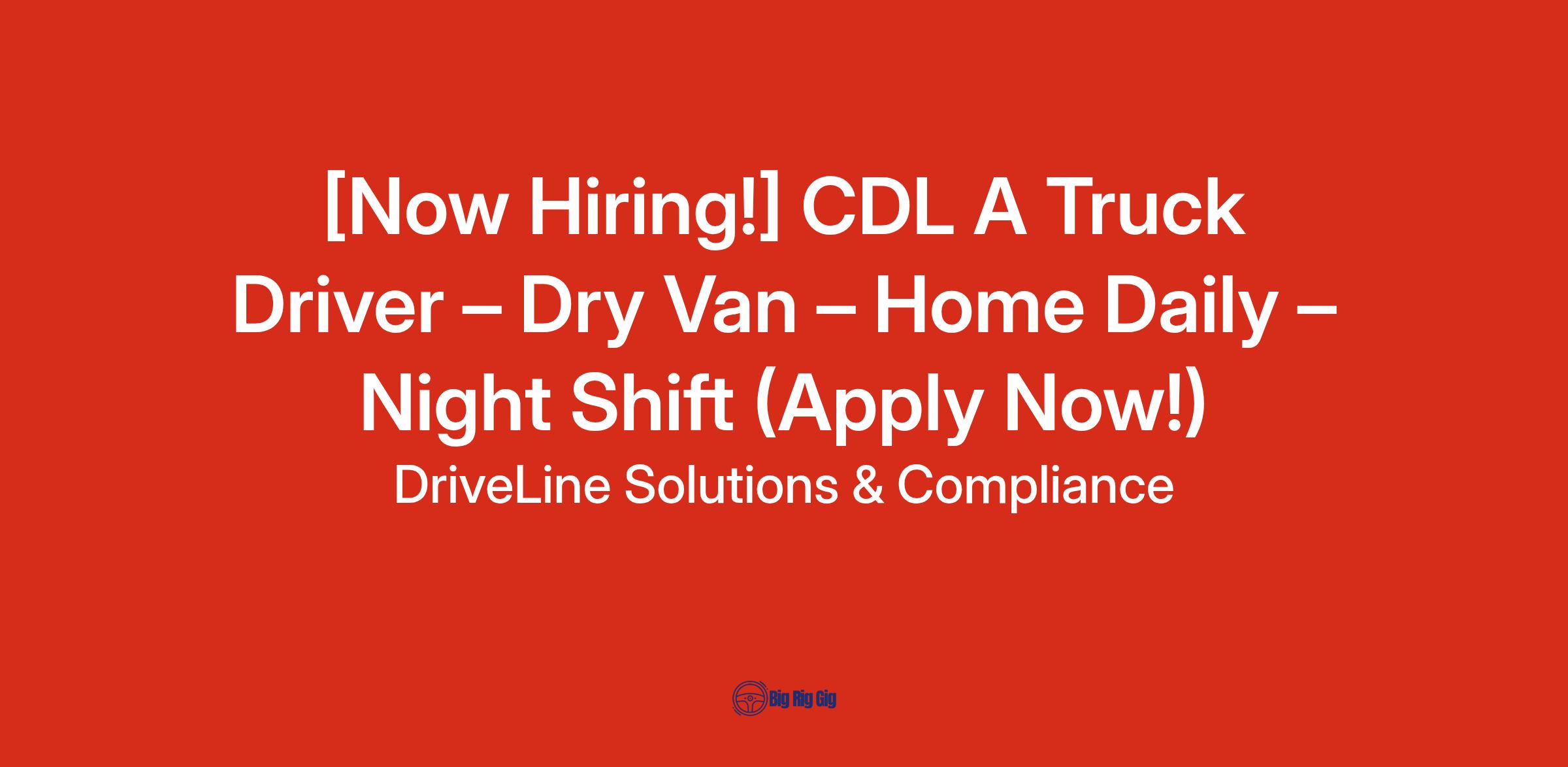Experience Required: Minimum 6 months to 1 year of truck driving experience (First Seat Only)