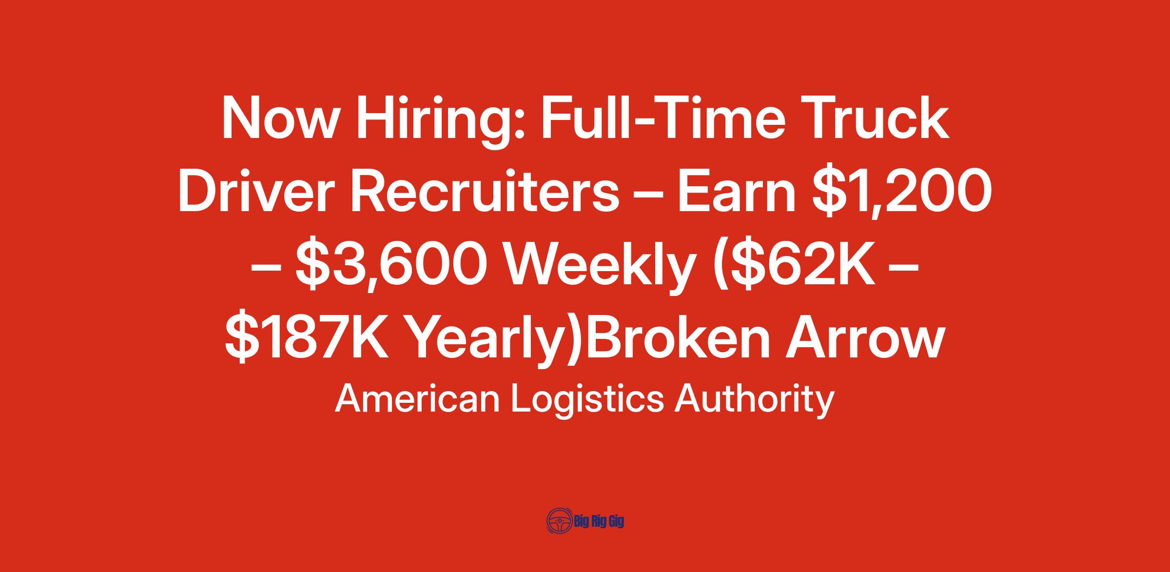 Now Hiring: Full-Time Truck Driver Recruiters – Earn $1,200 – $3,600 Weekly ($62K – $187K Yearly)Broken Arrow