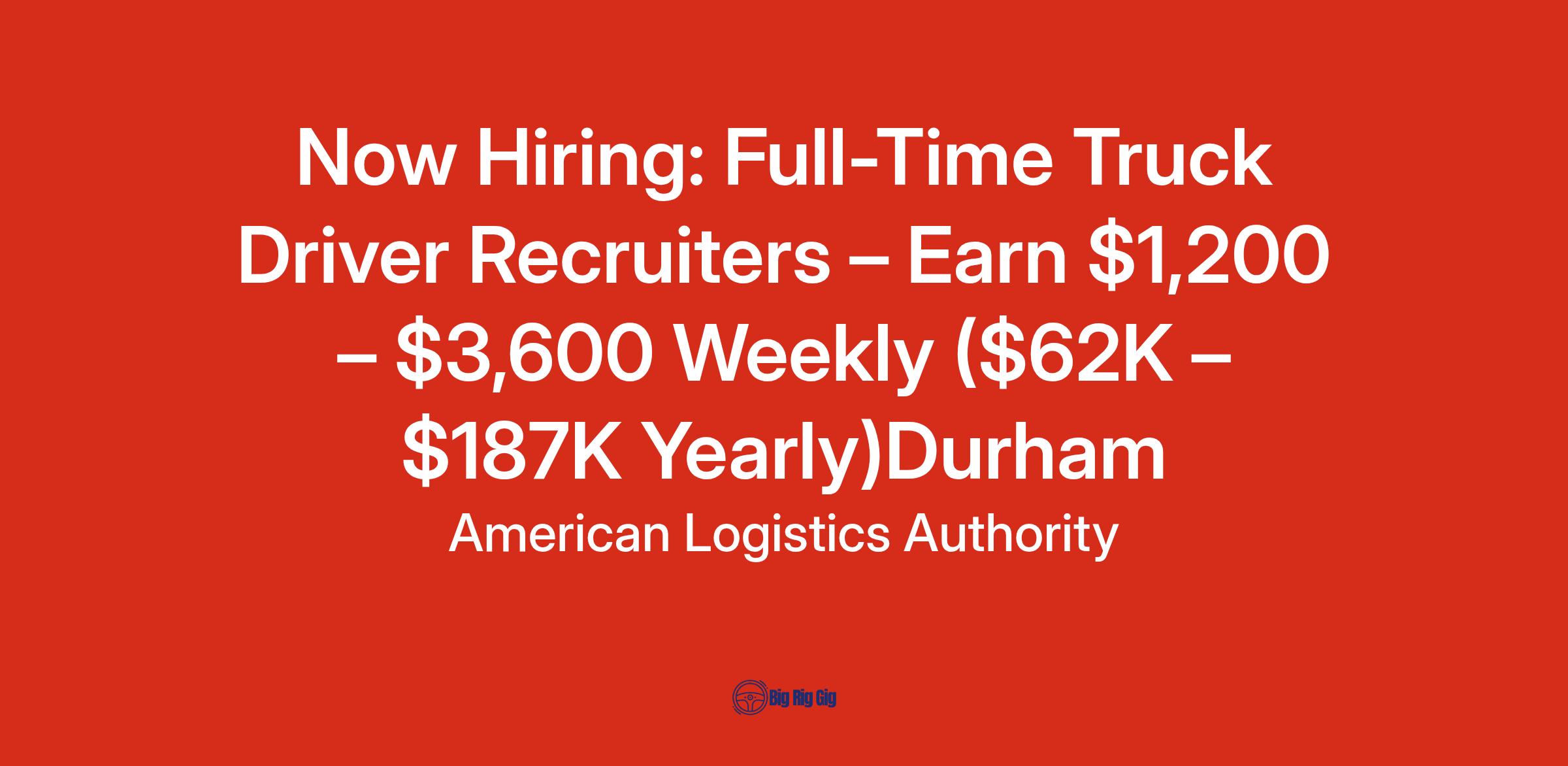 Now Hiring: Full-Time Truck Driver Recruiters – Earn $1,200 – $3,600 Weekly ($62K – $187K Yearly)Durham