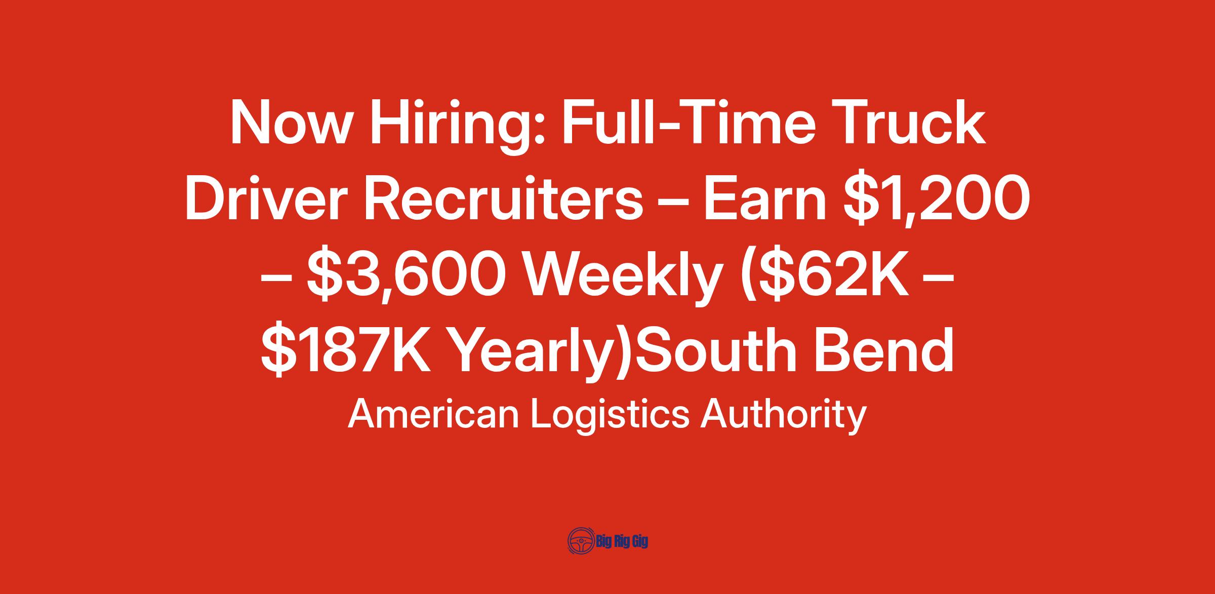 Now Hiring: Full-Time Truck Driver Recruiters – Earn $1,200 – $3,600 Weekly ($62K – $187K Yearly)South Bend