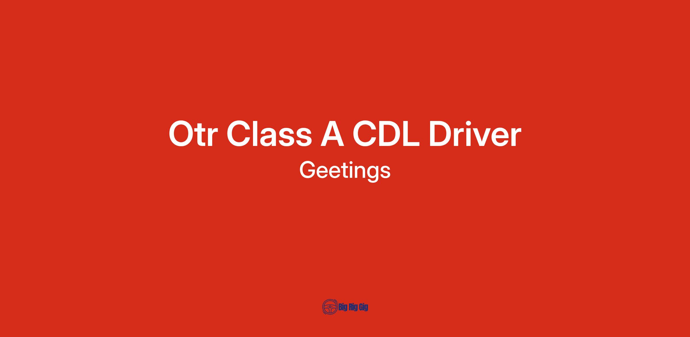 Otr Class A CDL Driver