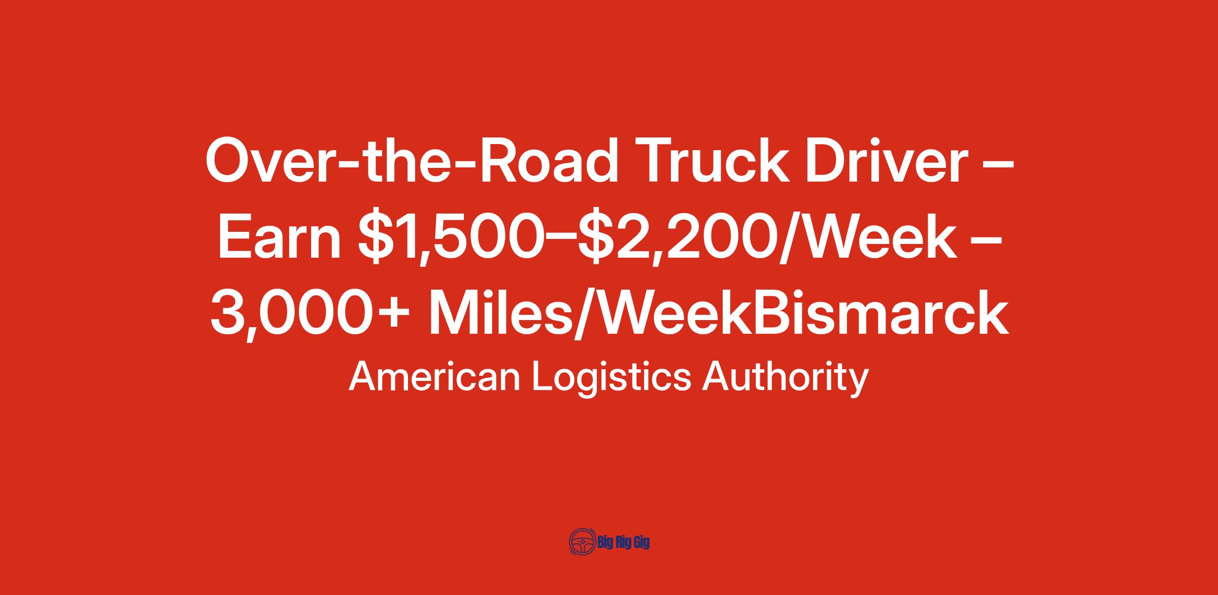 Over-the-Road Truck Driver – Earn $1,500–$2,200/Week – 3,000+ Miles/WeekBismarck