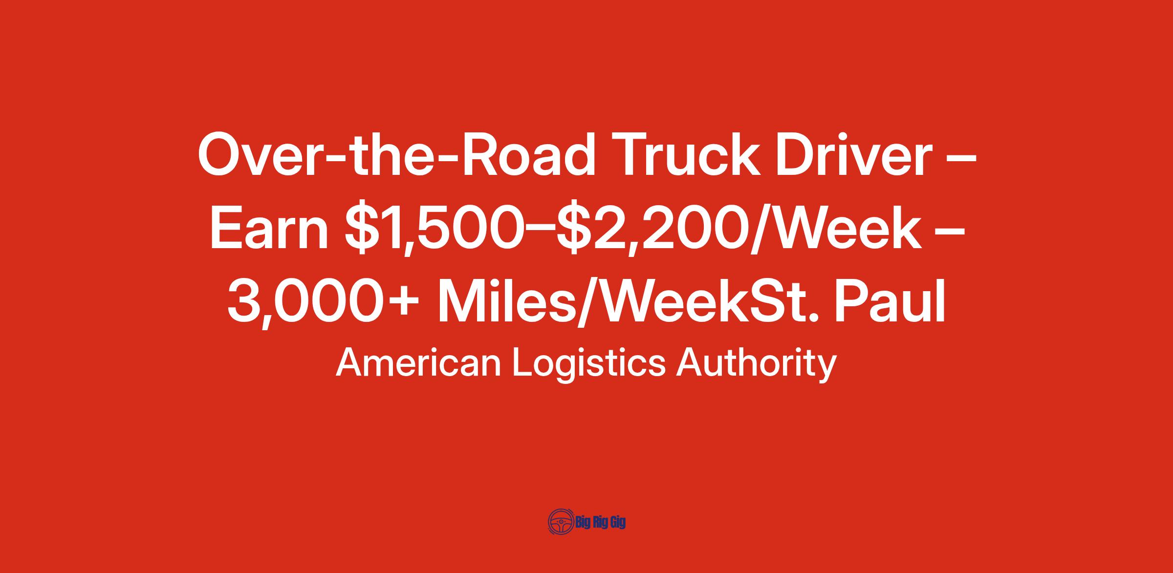 Over-the-Road Truck Driver – Earn $1,500–$2,200/Week – 3,000+ Miles/WeekSt. Paul