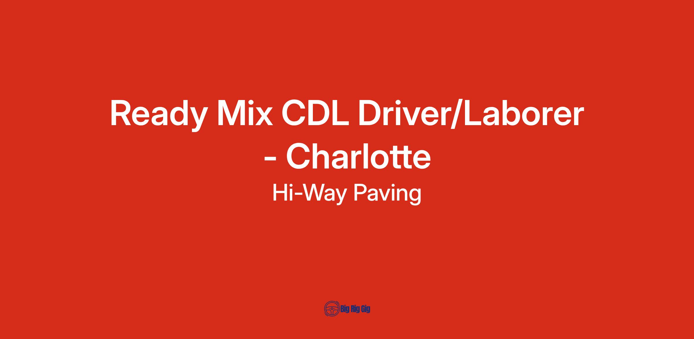 We are currently seeking a certified ready-mix CDL Driver/Laborer to join our team at our job site in Charlotte, NC. Presently, this position will require you to work overnight.Β The ideal candidate will operate ready-mix concrete trucks, assist with loading and unloading equipment and materials, and perform daily maintenance and inspections on equipment. In addition to driving responsibilities, the CDL Driver will support the operations with general labor tasks on the construction site. The driver is required to maintain a valid commercial driver's license.Β Β