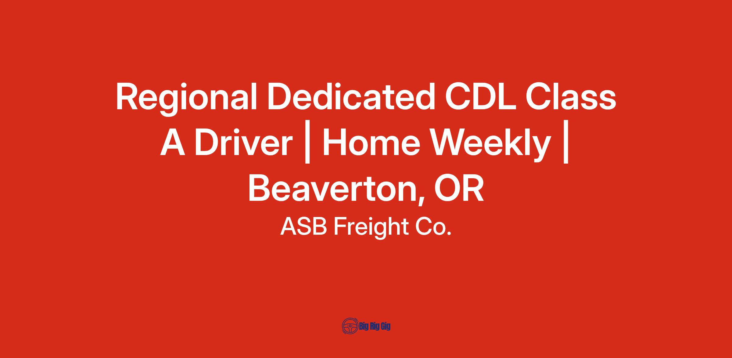 Regional Dedicated CDL Class A Driver | Home Weekly | Beaverton, OR