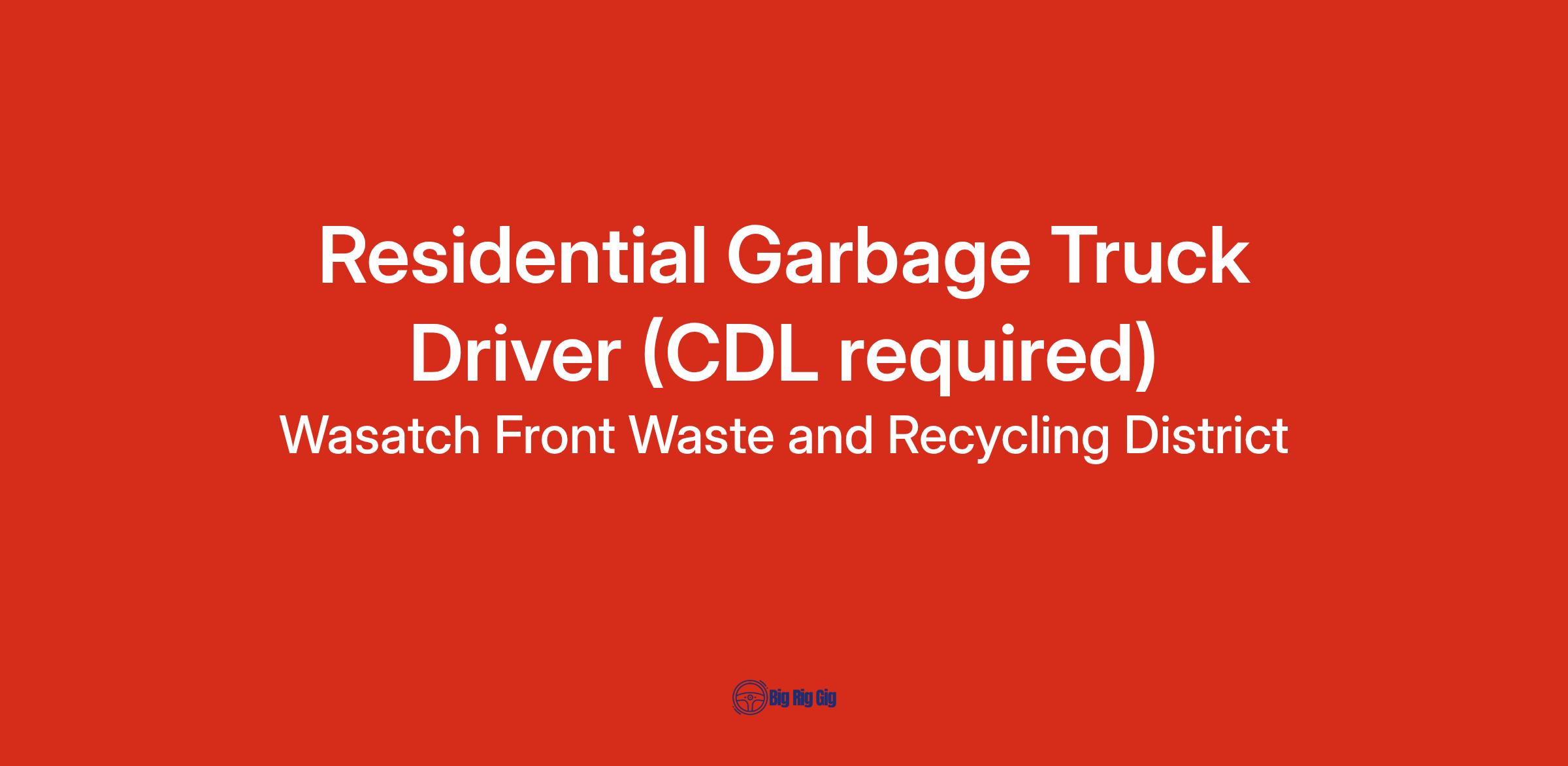One year of truck driving experience, with at least six (6) months experience in a job which requires a Commercial Driverβs License (CDL) or a minimum of six (6) months as a seasonal driver with Wasatch Front Waste & Recycling District. Possession of a valid Class B Commercial Driver's License (CDL) with valid DOT Medical Card at the time of hire. Pay is calculated based on years of experience.