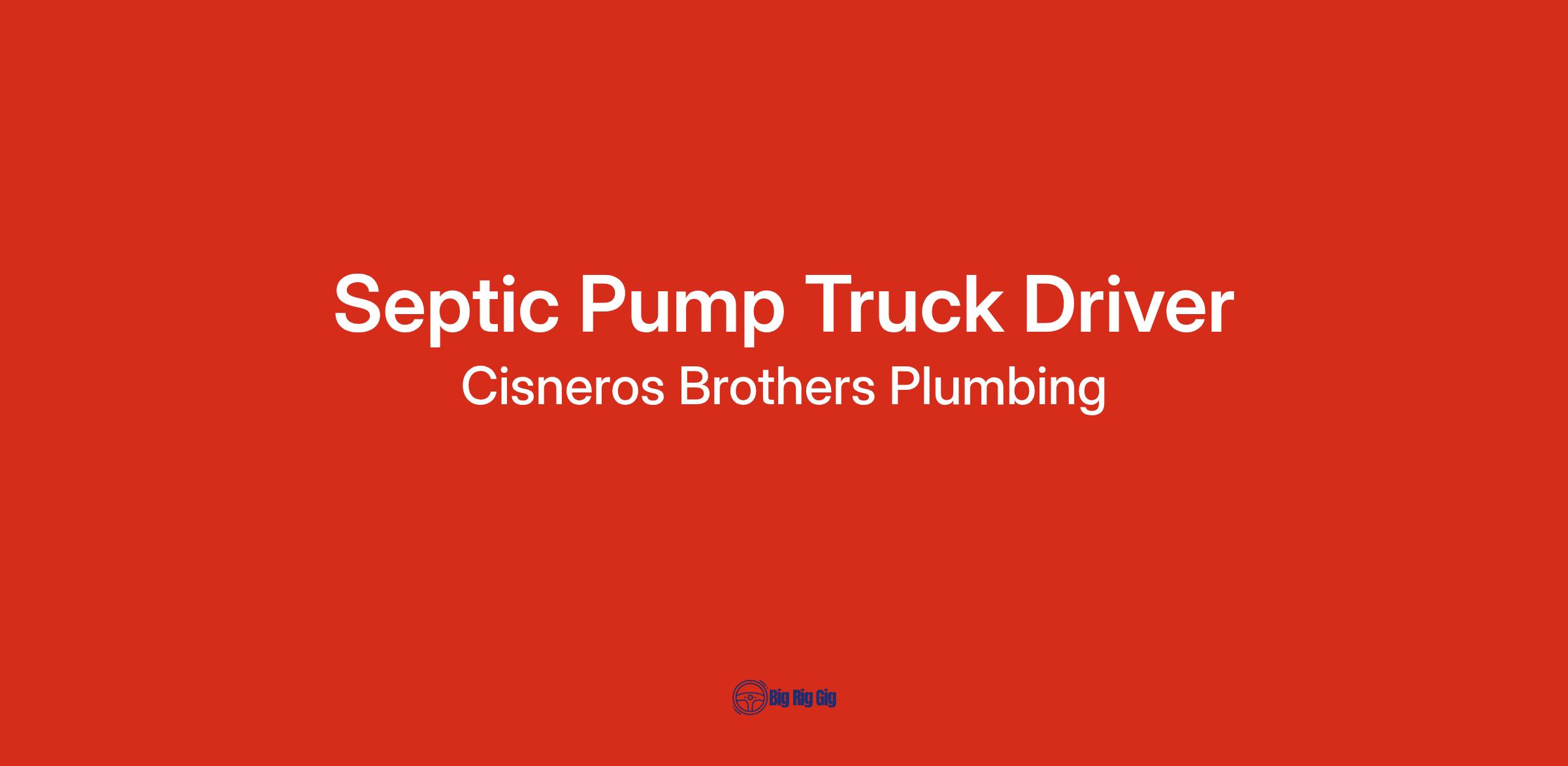 Cisneros Brothers Home Services is a locally owned and operated plumbing company seeking a reliable and safety-conscious Septic Pump Truck Driver to join our growing team.