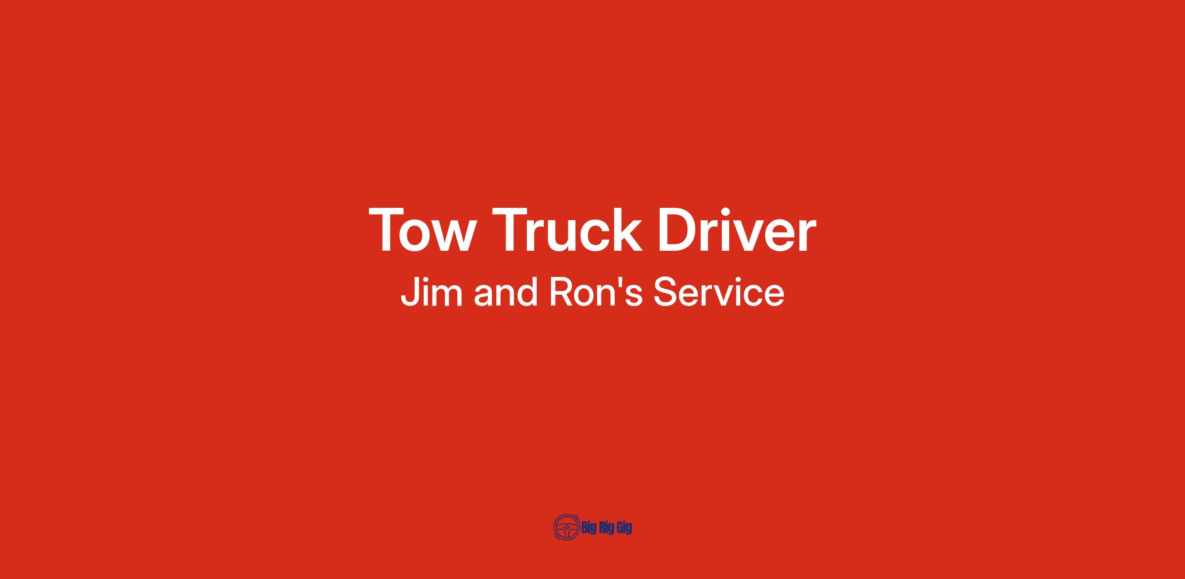 Immediate position available for full time tow truck/flatbed driver. If you like working outdoors and like a variety of responsibilities. We are looking for you! Here is your chance to work with a company with a proven history and a great reputation since 1963!Β Self motivated and customer friendly person needed. Experience preferred but not required. 40+ hrs week, must be able to work some nights/weekends. Paid vacations and holidays. $60,000+ annually. Health, life, dental, vision, cancer, accident, supplemental insurance available. Β Dental and vision paid 100%. Β A background in automotive preferred. No CDL required for this position. Apply online by clicking now,Β or at Jim and Ron's Service Inc.
