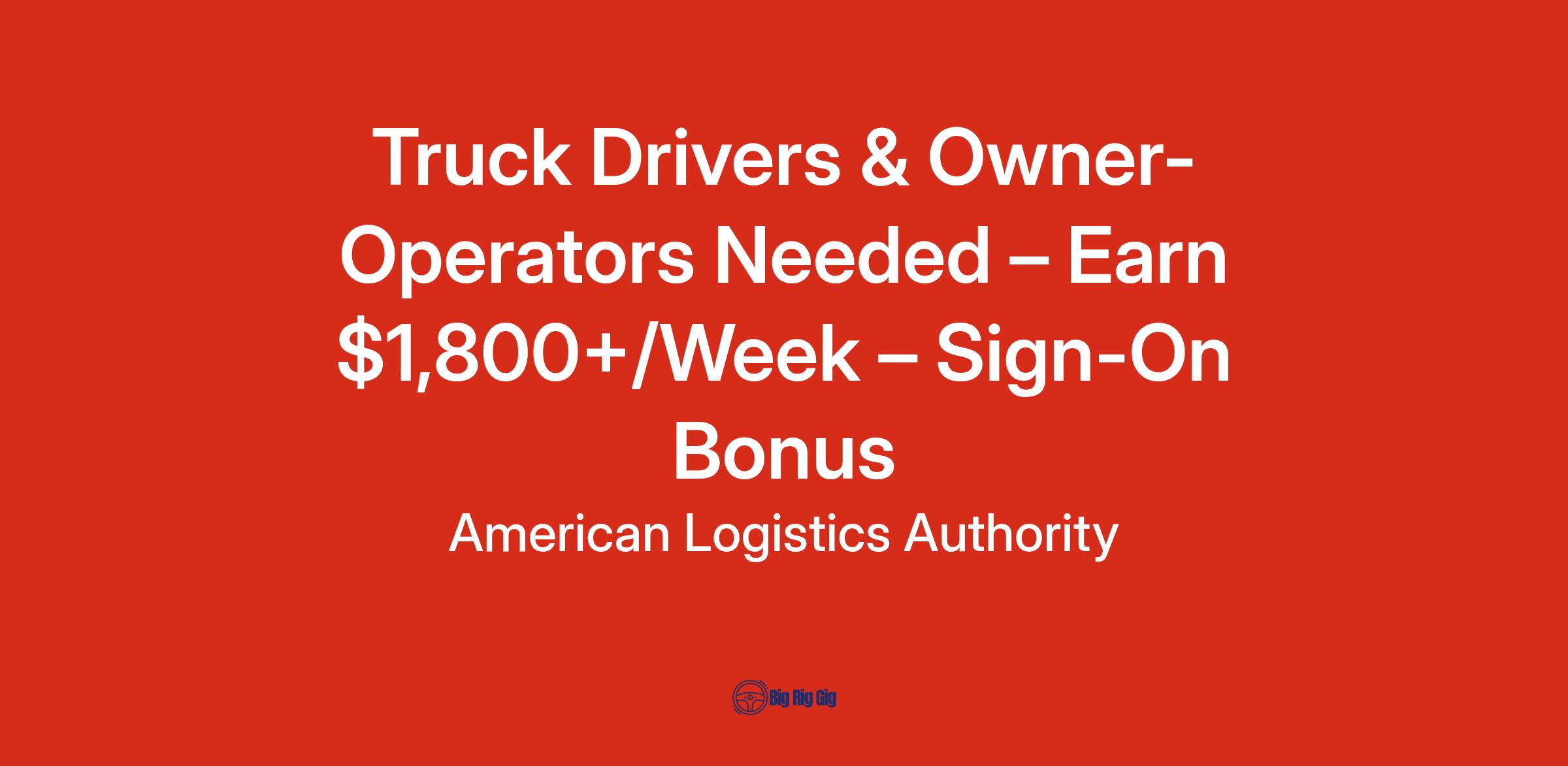 ruck Drivers & Owner-Operators Needed – Earn $1,800+/Week – Sign-On Bonus