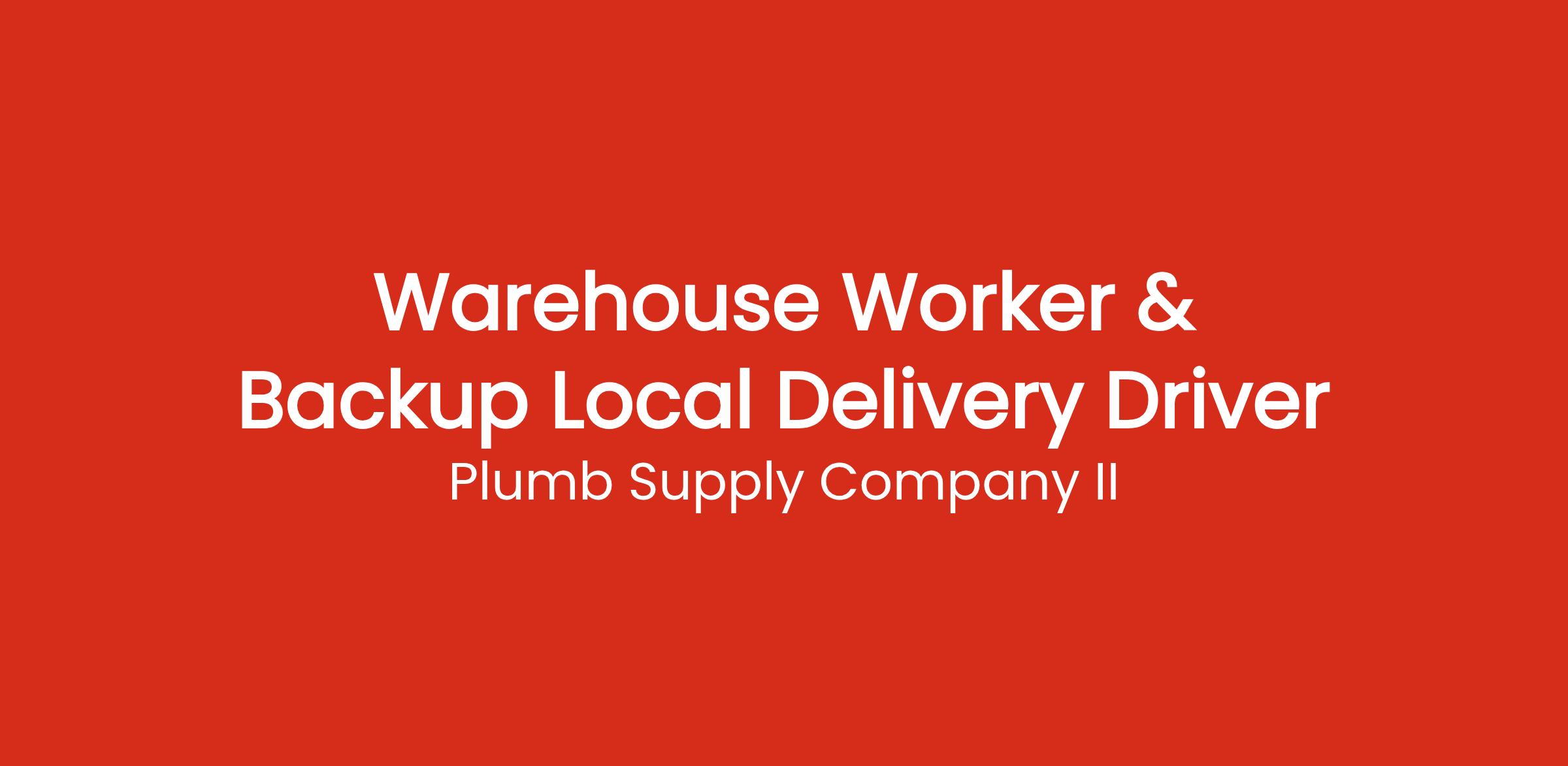 Plumb Supply Company has an opening for a dependable person with a great attitude, attention to detail and a team player to join their Springfield, MO team. We offer opportunities for growth and advancement within the company, competitive pay, paid vacation, and health, dental, and vision insurance.