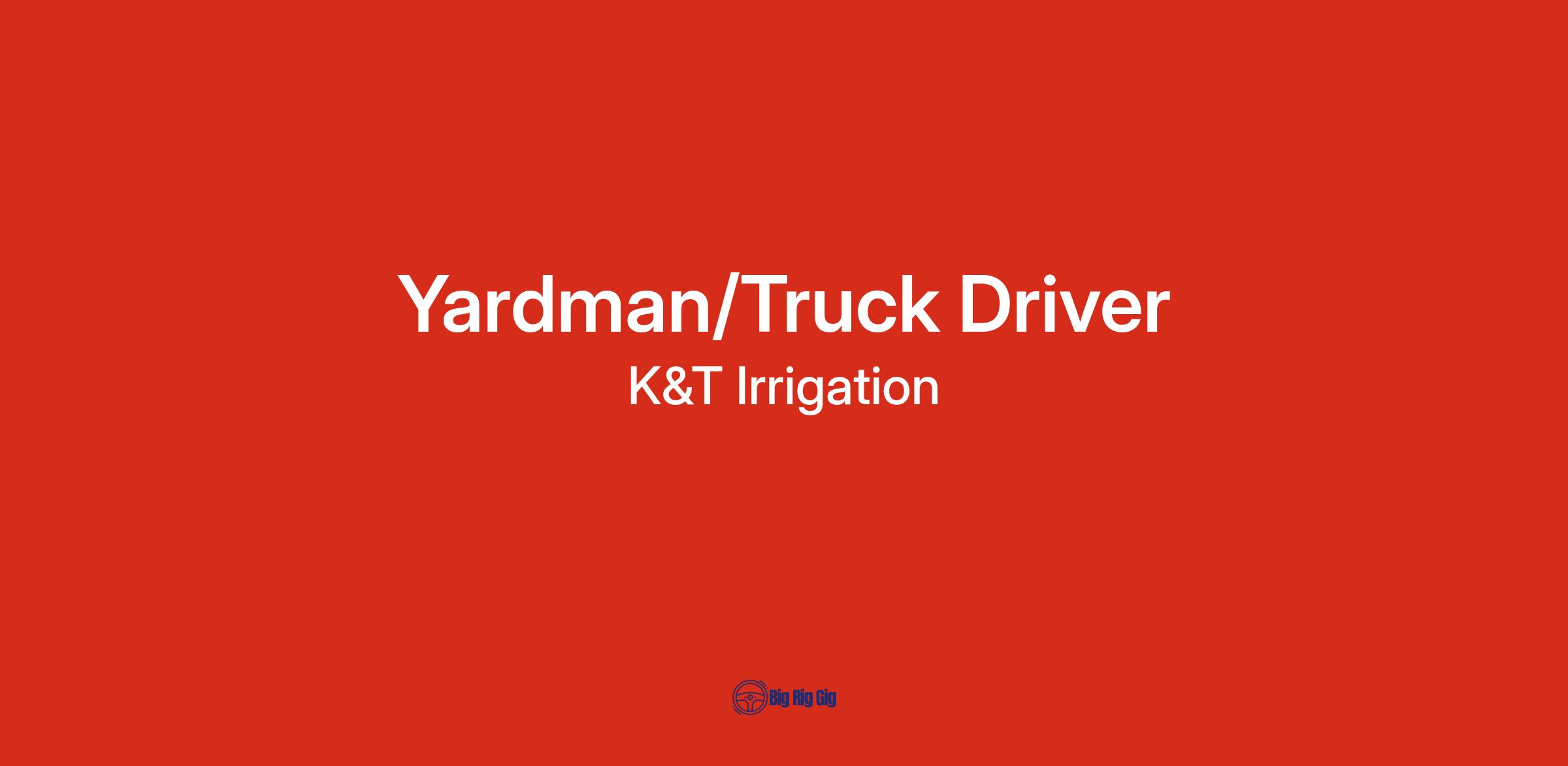 Yardman/Truck Driver is a flexible position with K&T Irrigation. This individual is responsible for keeping the yard organized, general maintenance, odd jobs around the yard, driving semi hauling products and equipment to jobsites, unloading incoming products and assisting with general labor when needed. After the irrigation season, this candidate will be assisting on grain project equipment and product deliveries. During the coldest days and inclement weather this individual will also assist with snow removal and routine maintenance of company equipment and buildings. This candidate will contribute to the success of K&T Irrigationβs Field Service team, and be dedicated to safety, quality, and efficiency. Irrigation or grain experience is not necessary. Candidates must possess a class A CDL license, be eager to learn, and actively seek to master the projects they are assigned to. This position can be full time or seasonal depending on applicants request. This is a very flexible position. Estimated break down of hours is 25% trucking, 50% yard/shop work and 25% field work.